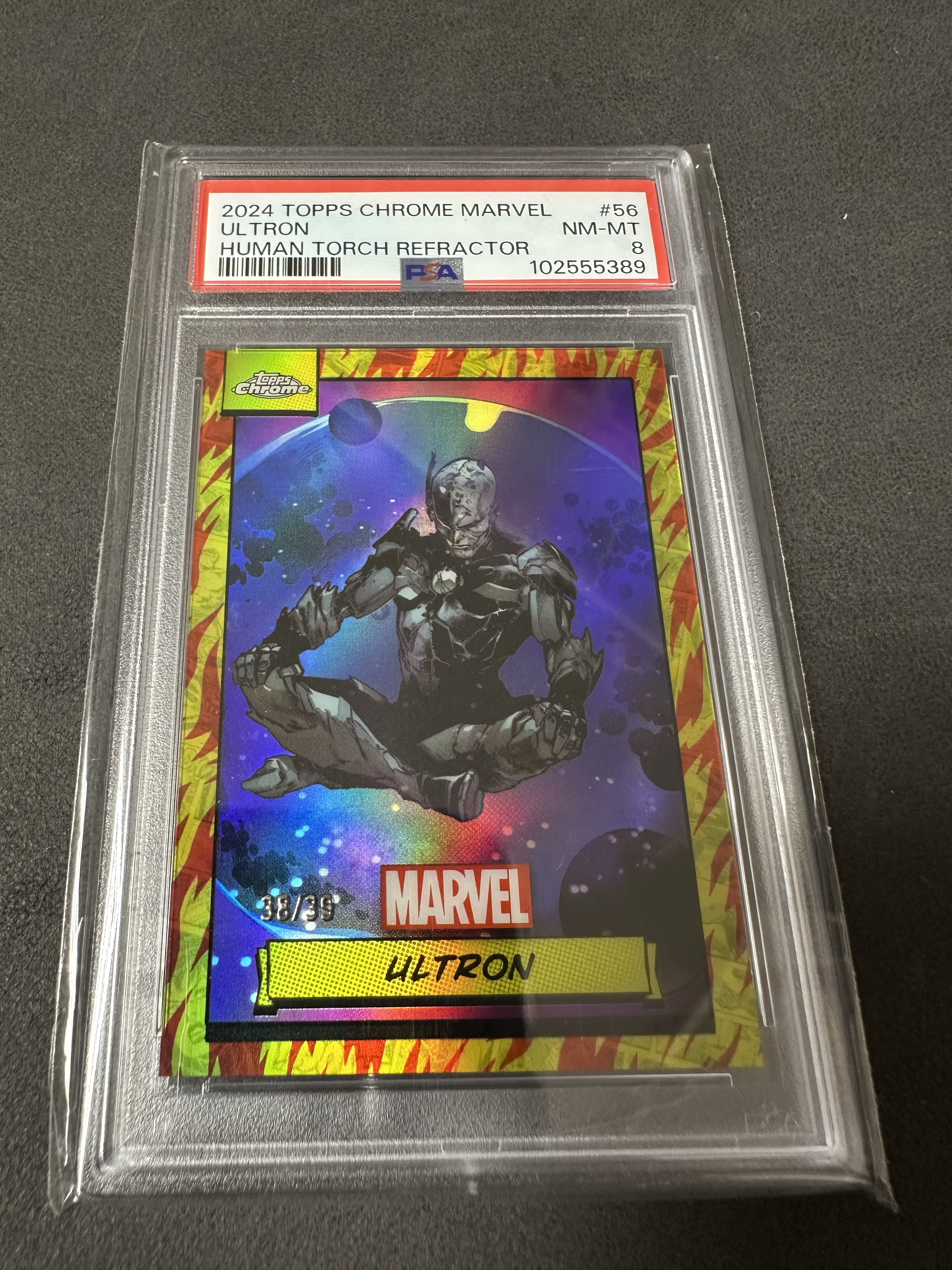 2024 Upper Deck Marvel (MCU) Topps Chrome Marvel 漫威元年TC系列 /39编 奥创 Ultron 火焰折 霹雳折 PSA8分 #56