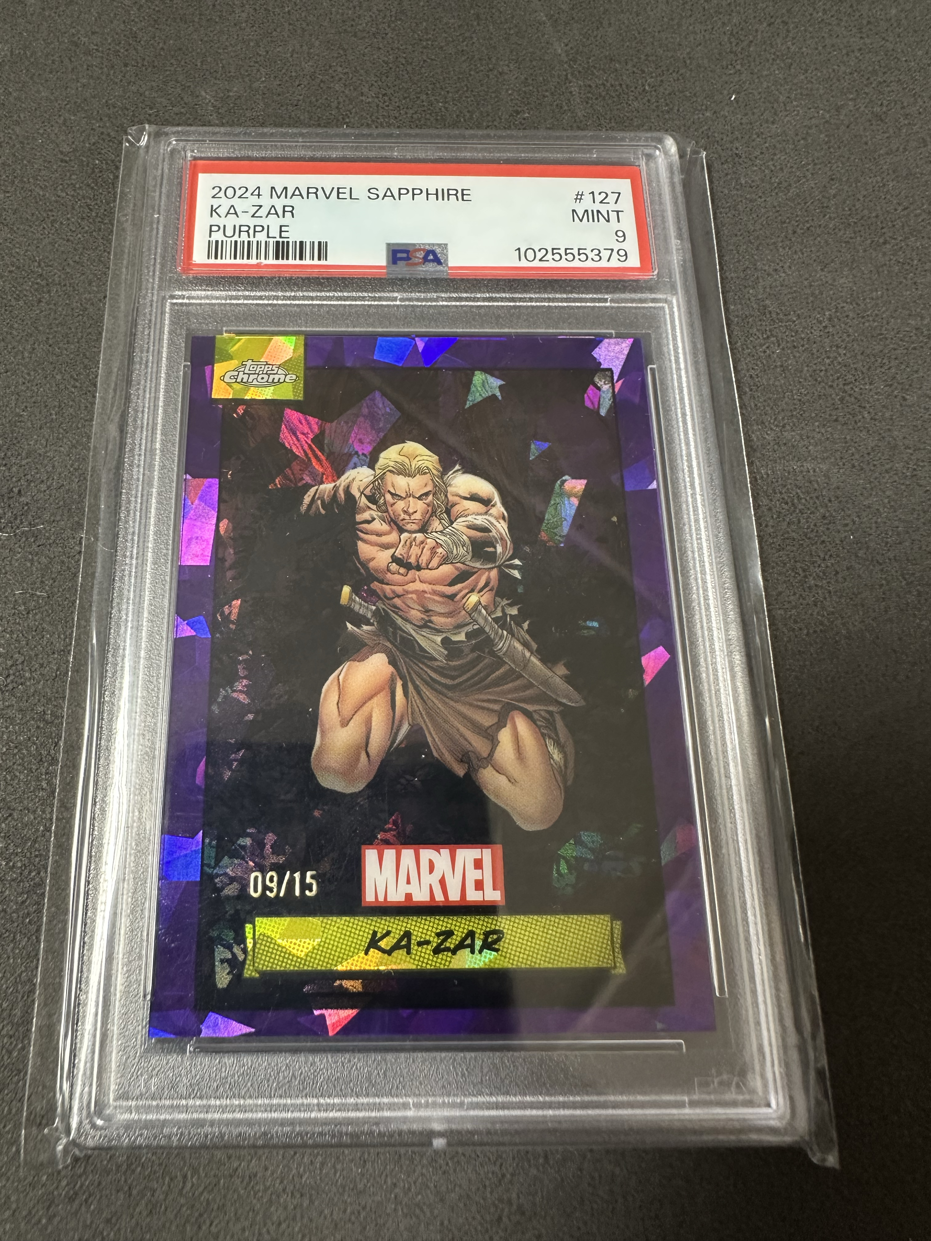 2024 Upper Deck Marvel (MCU) Topps Chrome Marvel 漫威元年TC系列 蓝宝石 /15编 拉扎尔 KA-Zar 紫碎冰折 评级卡 PSA9分 #127