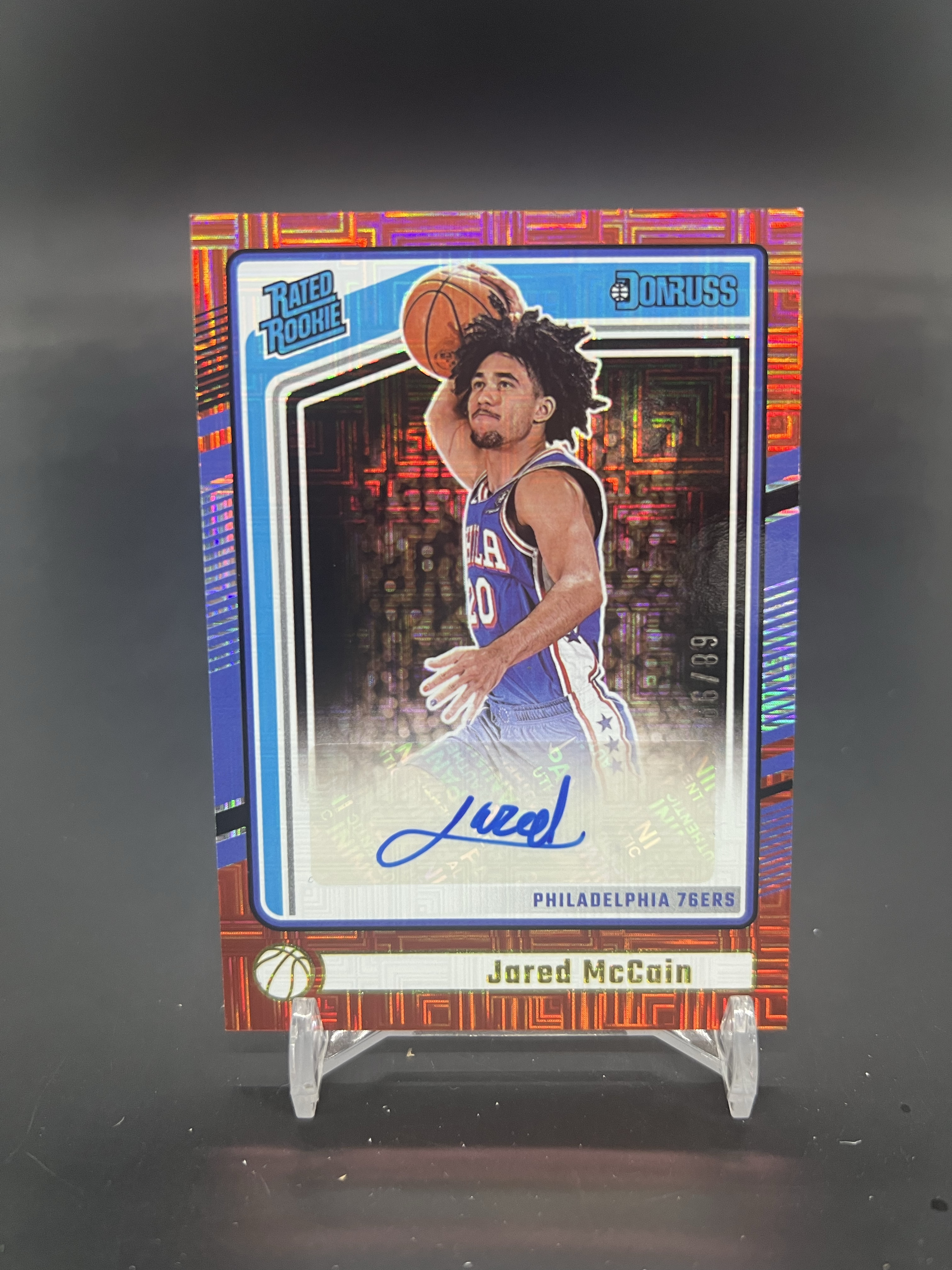 2024-25 Panini Donruss Jared McCain RC 杜蕾斯 76人 新秀 贾里德 麦凯恩 魔仙哥 68/99编 红迷宫折 签字 签名 折射 卡品如图 (80)