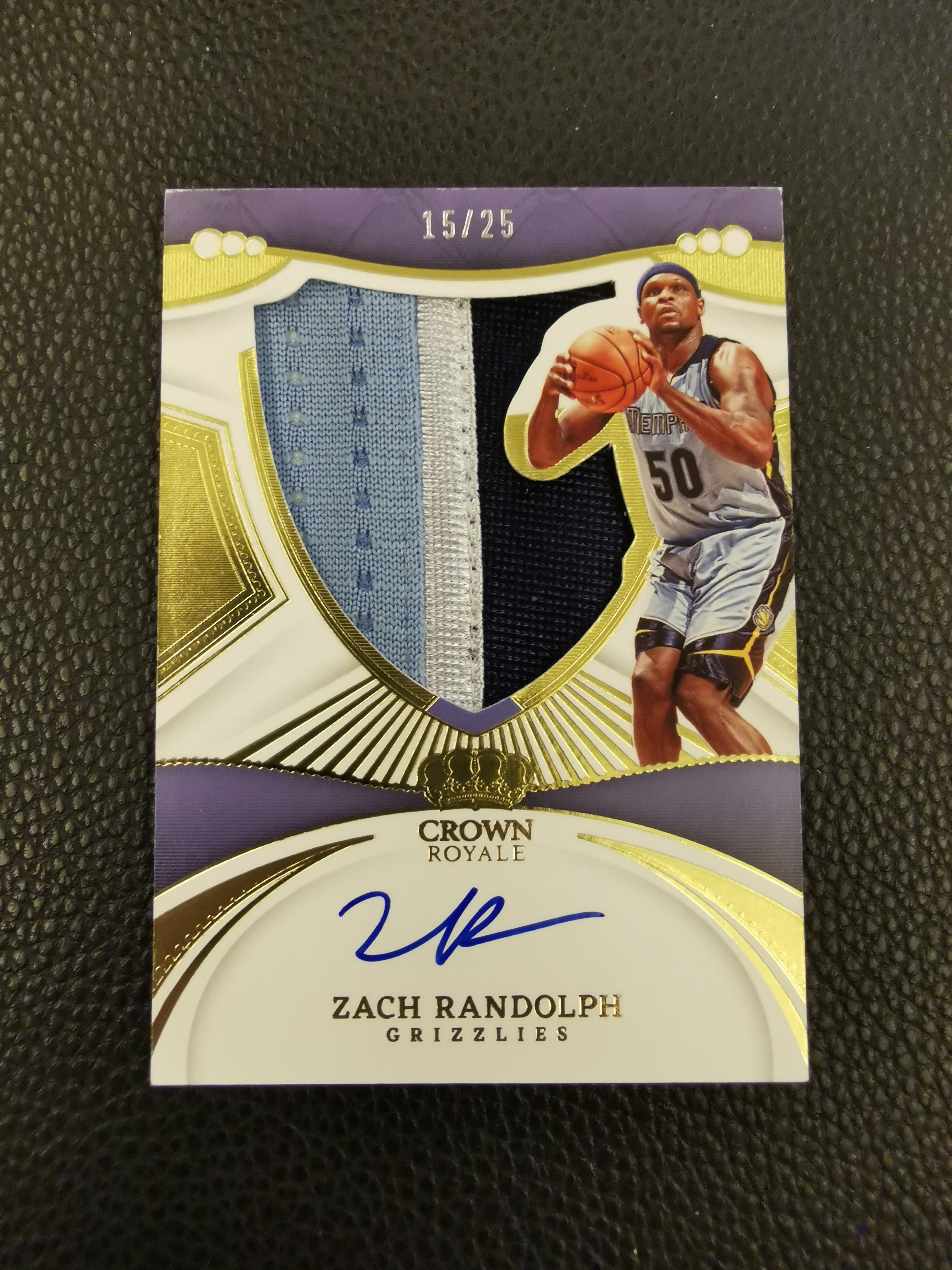 【金矿卡社】22-23 皇冠 crown royale 剪影 灰熊 扎克兰多夫 Zach randolph 卡签签字 大窗三色落场球衣字母切割 patch /25编 小加索尔黑白双煞 边角微白 金洪