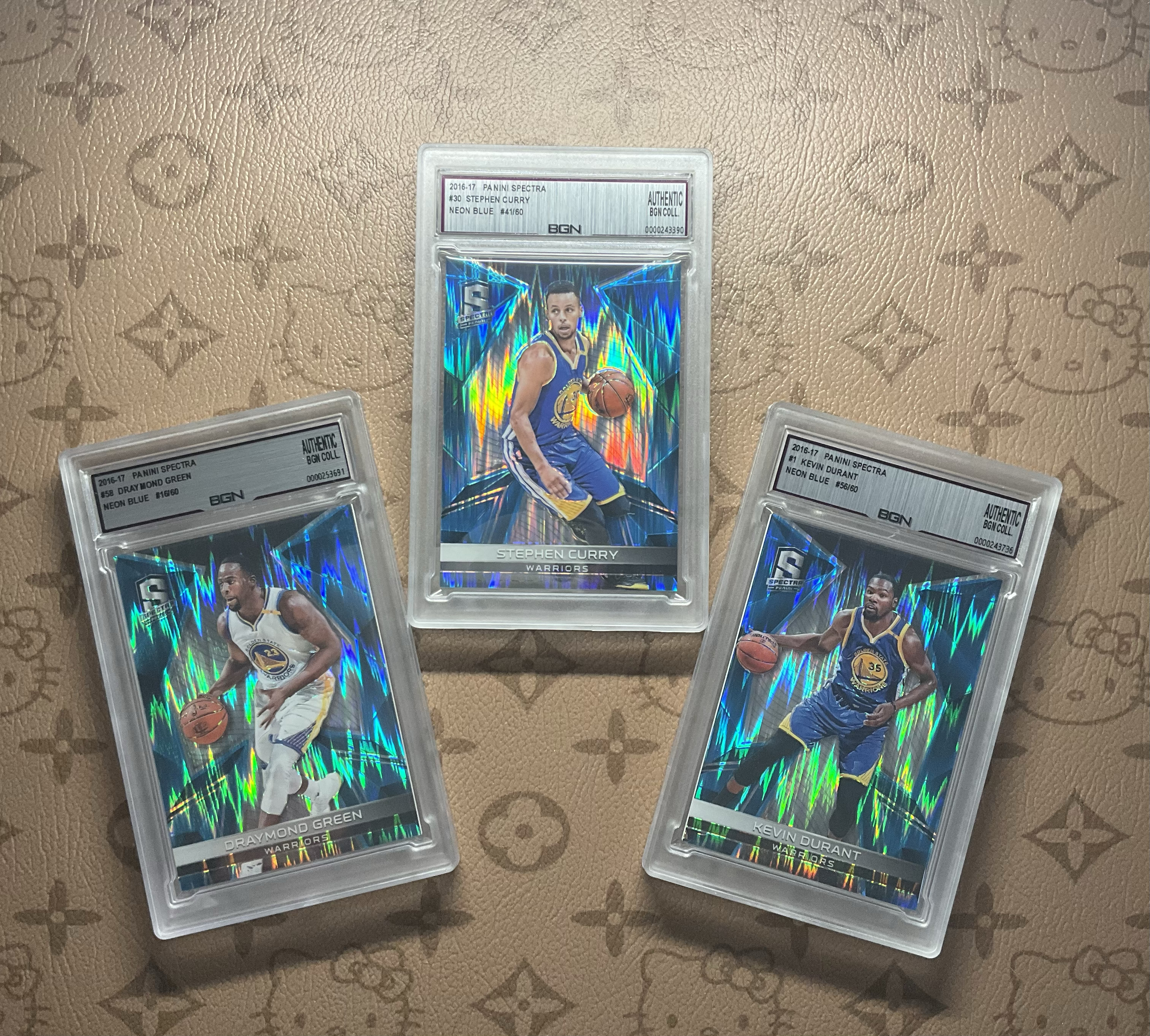 2016-17 Panini Spectra Stephen Curry 光谱 勇士 库里 杜兰特 格林 60编 蓝瀑布折 三张lot 宇宙勇 三巨头 折射 BGN评级