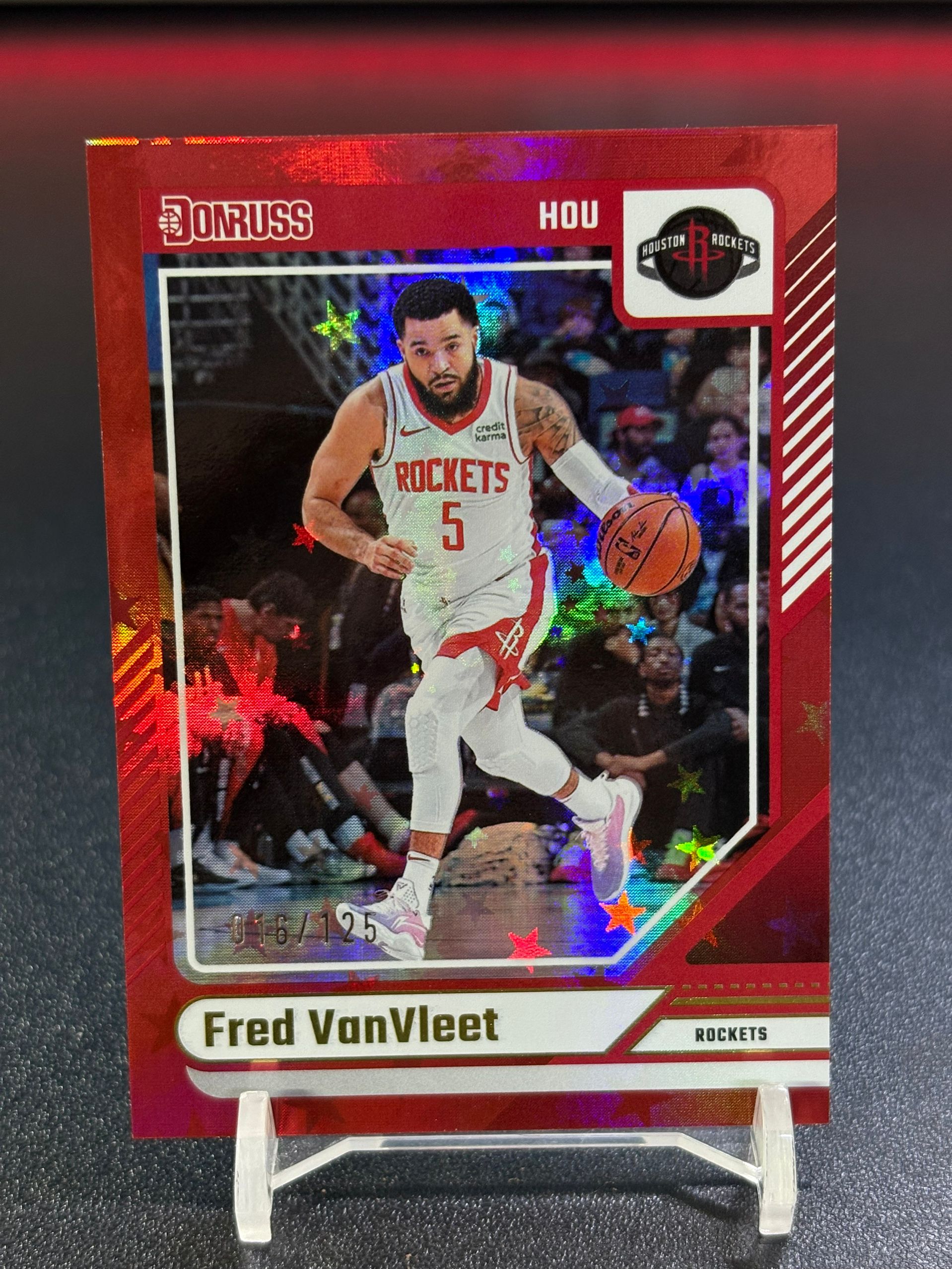 【浩行拍卖 截标预付82%】2024-25 panini donruss fred vanvleet 杜蕾斯 火箭 范弗利特 范弗里特 红折 星星折 折射 16/125编 瑕疵看图 专收必备「气场」0523F06鍾