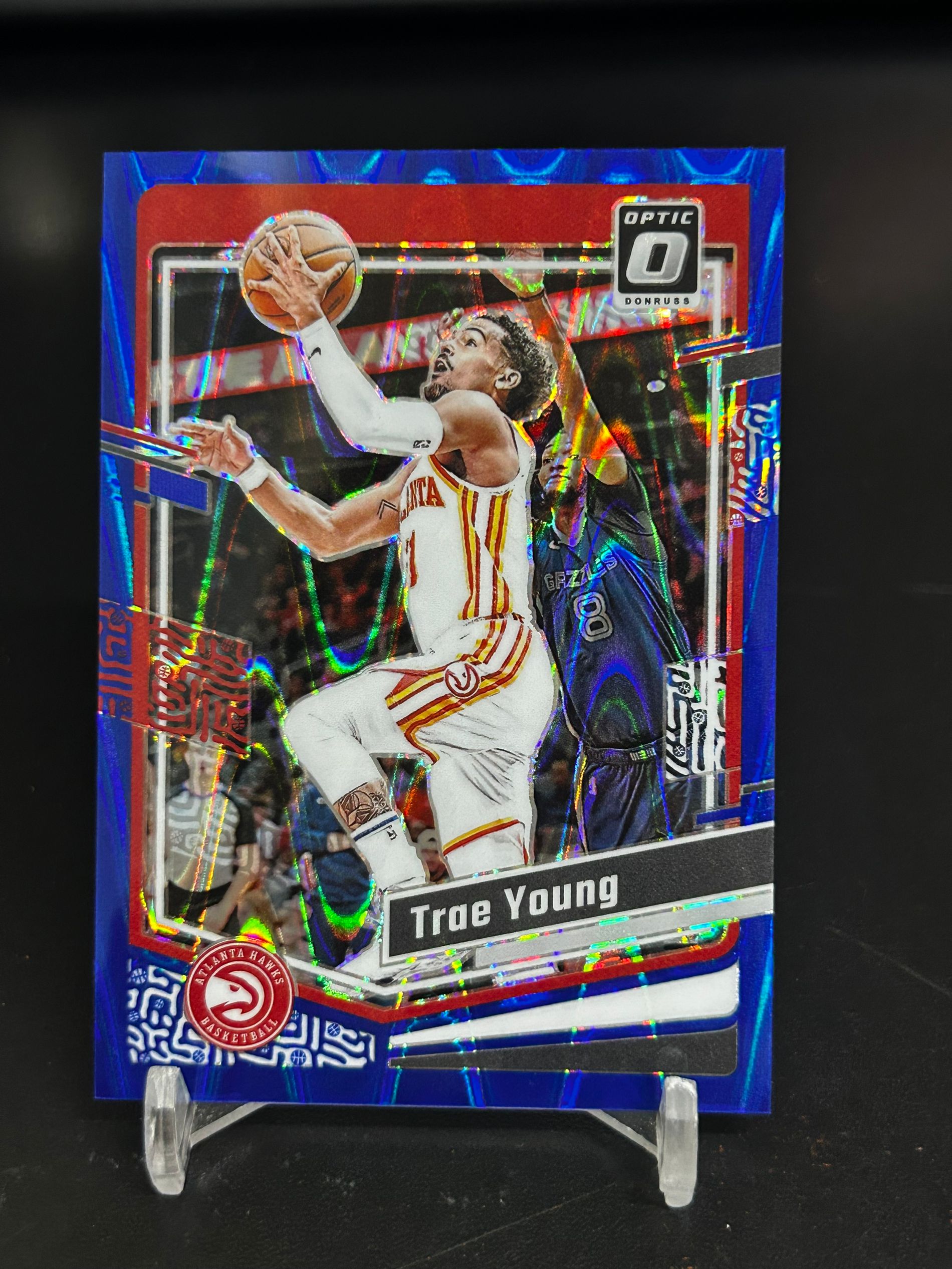【浩行拍卖 截标预付82%】2023-24 panini donruss optic trae young 杜蕾斯 老鹰 特雷杨 吹杨 纽约市长 98/249编 蓝变形虫 折射 瑕疵看图 专收必备「转身」0523G01張
