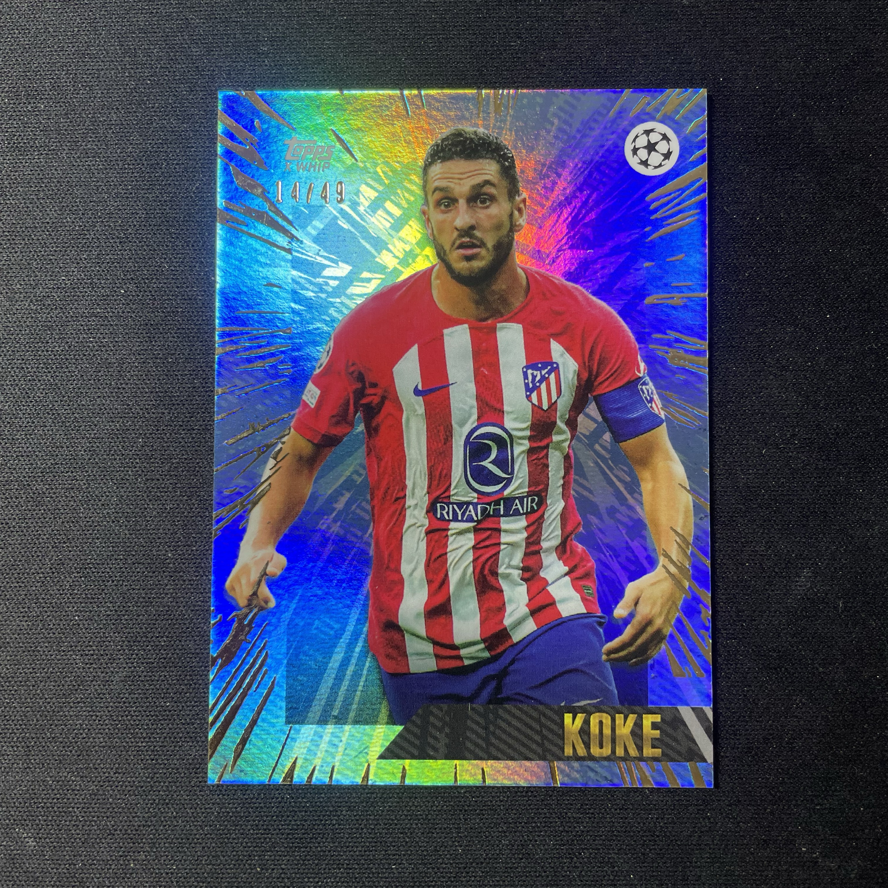 2023 Topps Gold Koke 【星集卡代卖】dj529 科克 马德里竞技 西班牙 欧冠 黄金盒 49编 蓝折 折射 足球