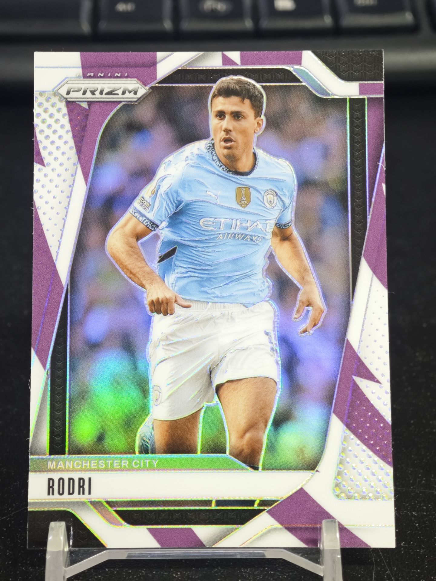 【浩行拍卖 截标预付82%】2024-25 panini prizm rodri 英超 曼城 罗德里 金球先生 15/92编 紫白折 折射「背包」0523A03單