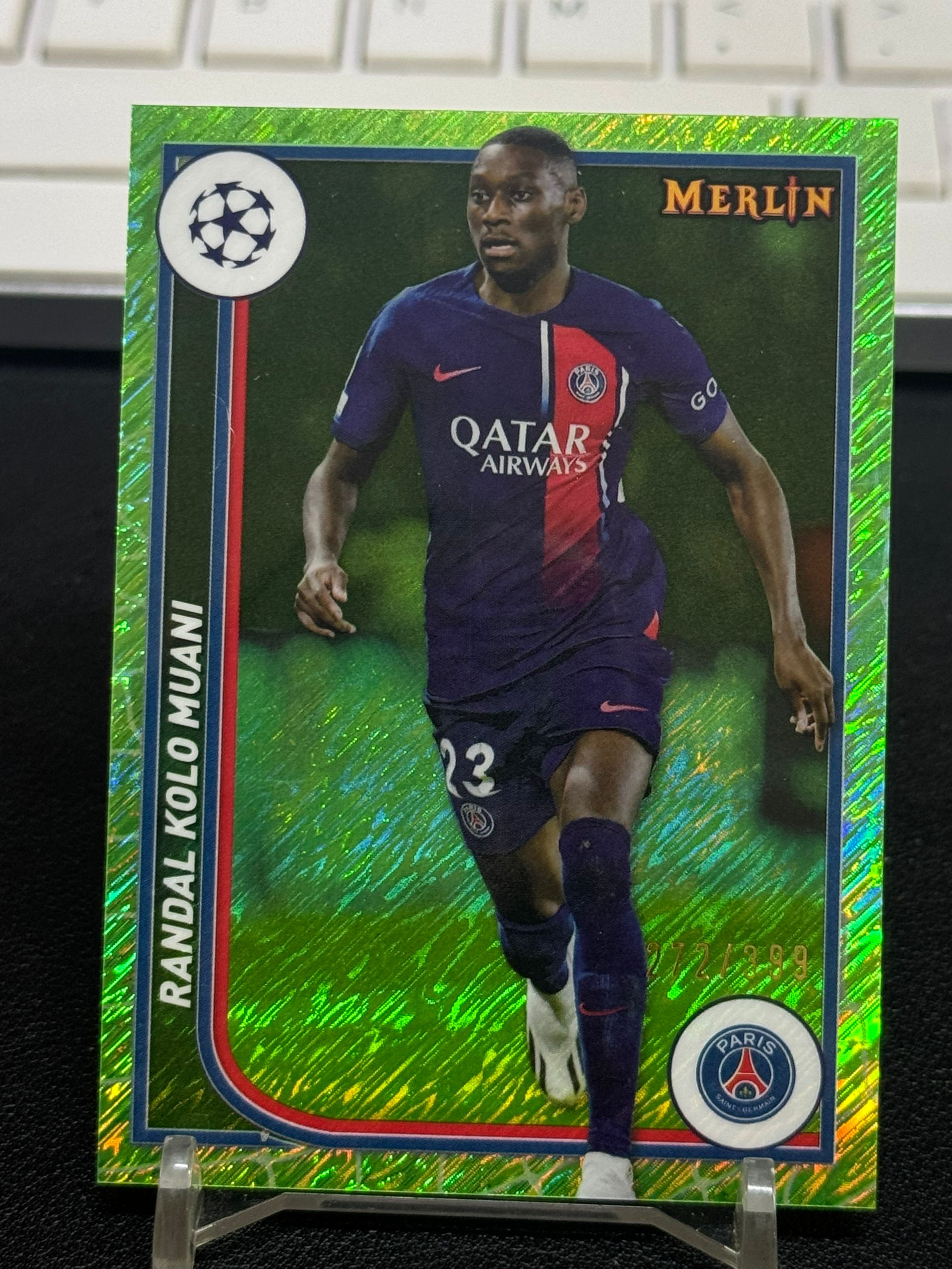 【浩行拍卖 截标预付82%】2024 topps Merlin randal kolo muani 梅林 大巴黎 欧冠 穆阿尼 绿雨点折 折射 272/399编 专收必备 瑕疵看图「鹿苑」0523B01裊
