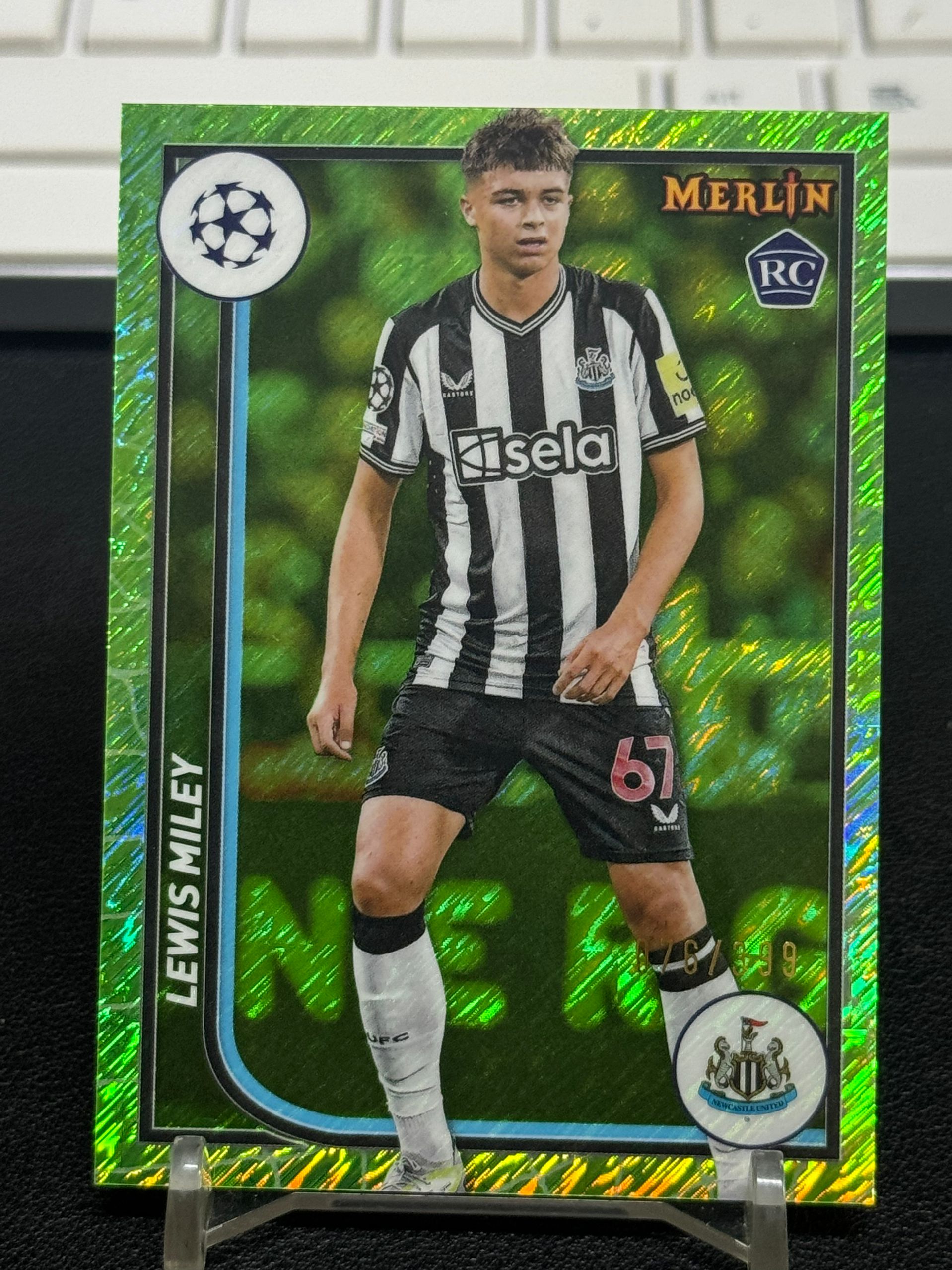 【浩行拍卖 截标预付82%】2024 topps Merlin lewis miley 梅林 纽卡斯尔 欧冠 刘易斯 米利 RC 新秀 绿雨点折 折射 76/399编 专收必备 瑕疵看图「鹿苑」0523B01裊