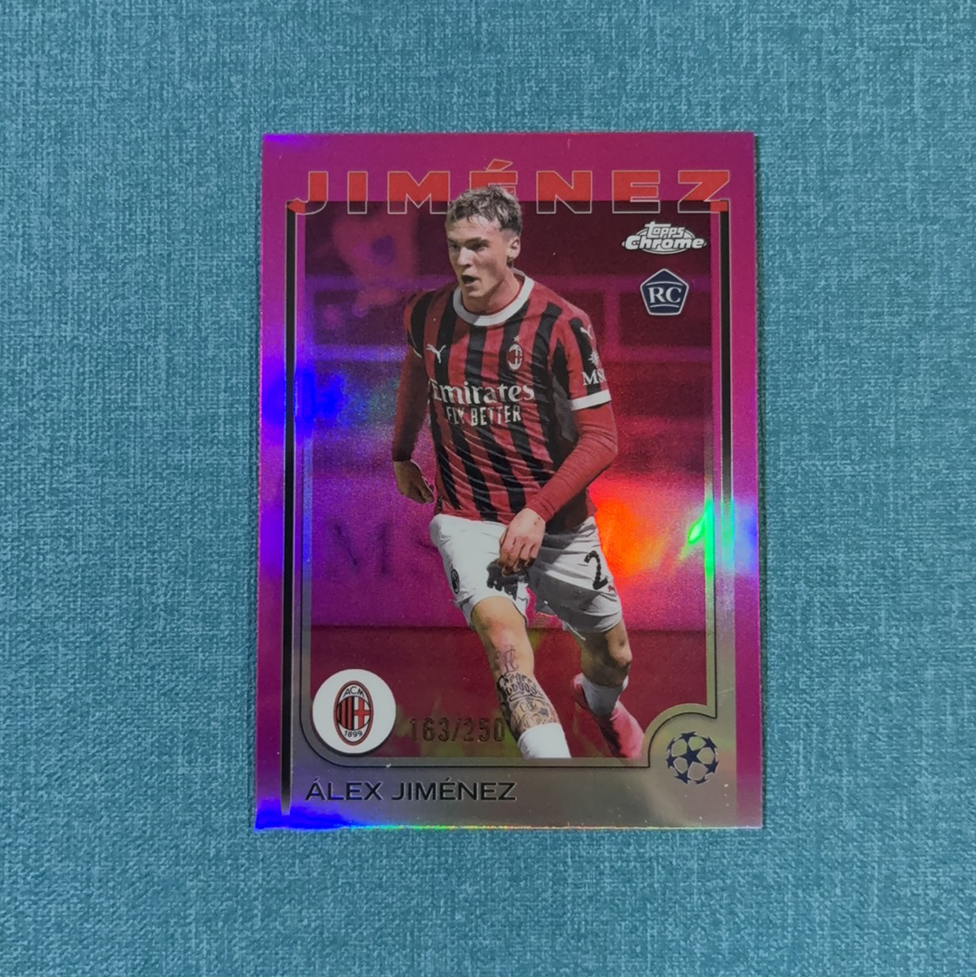2024-25 Topps Chrome 欧战 Alex Gimenez 阿莱士 希门尼斯 163/250编 新秀 RC 粉折 AC米兰 卡品如图 JGG