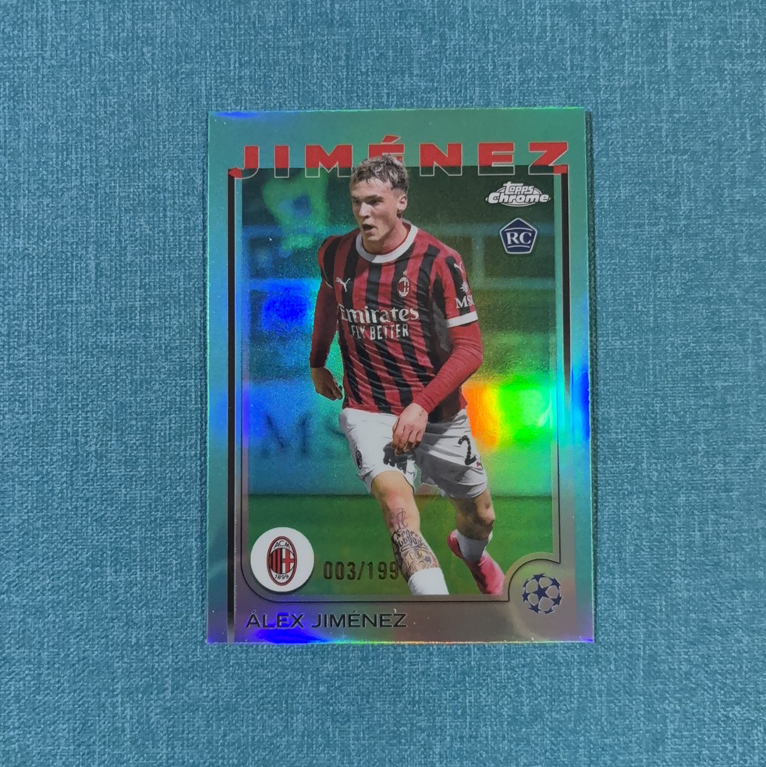 2024-25 Topps Chrome 欧战 Alex Gimenez 阿莱士 希门尼斯 003/199编 新秀 RC 水蓝折 AC米兰 卡品如图 JGG