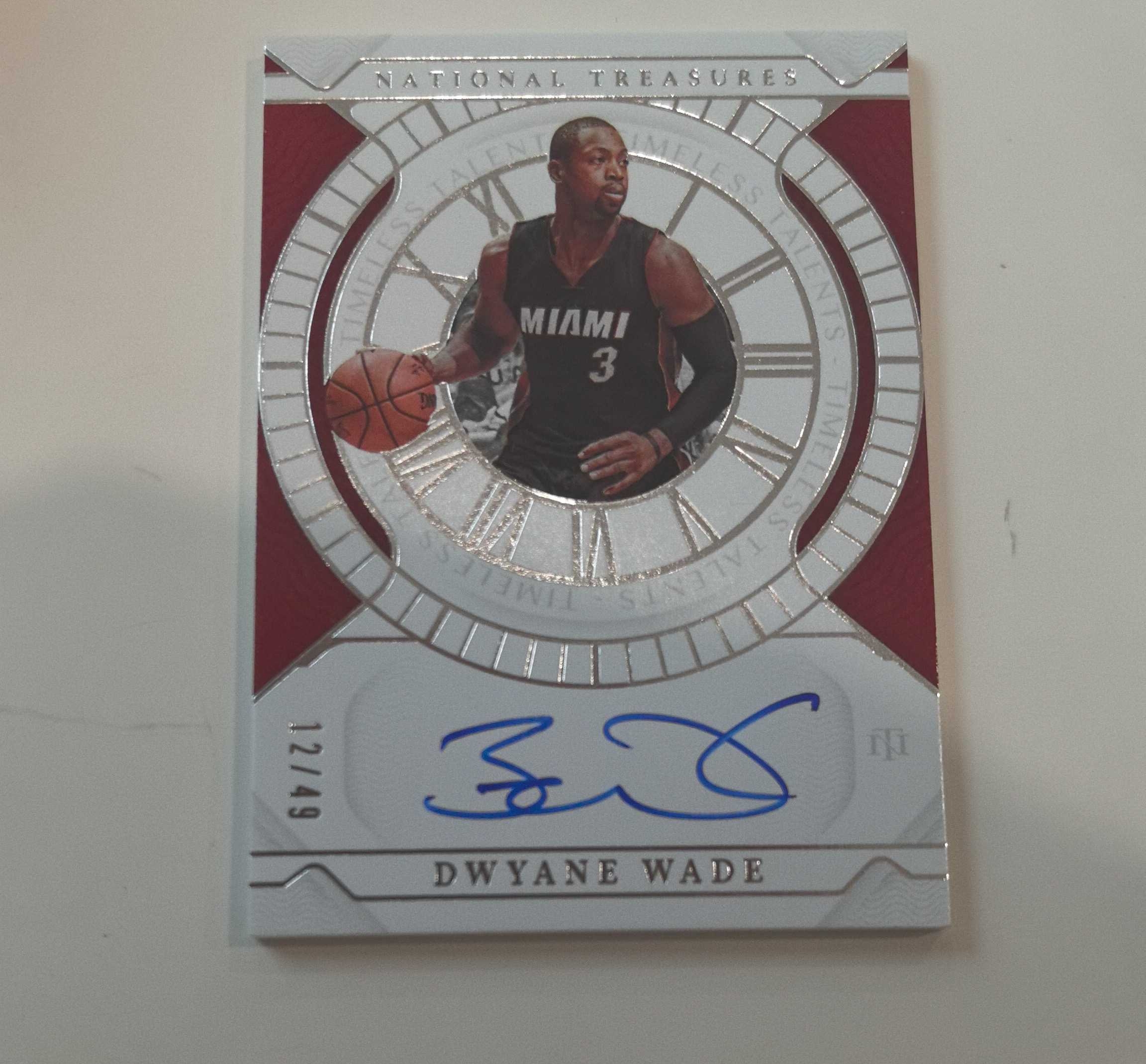 2021-22 Panini National Treasures Dwyane Wade 国宝系列 德怀恩 韦德 闪电侠 热火传奇巨星 75大巨星 名人堂 卡签签字 书法签 12/49编 送卡砖