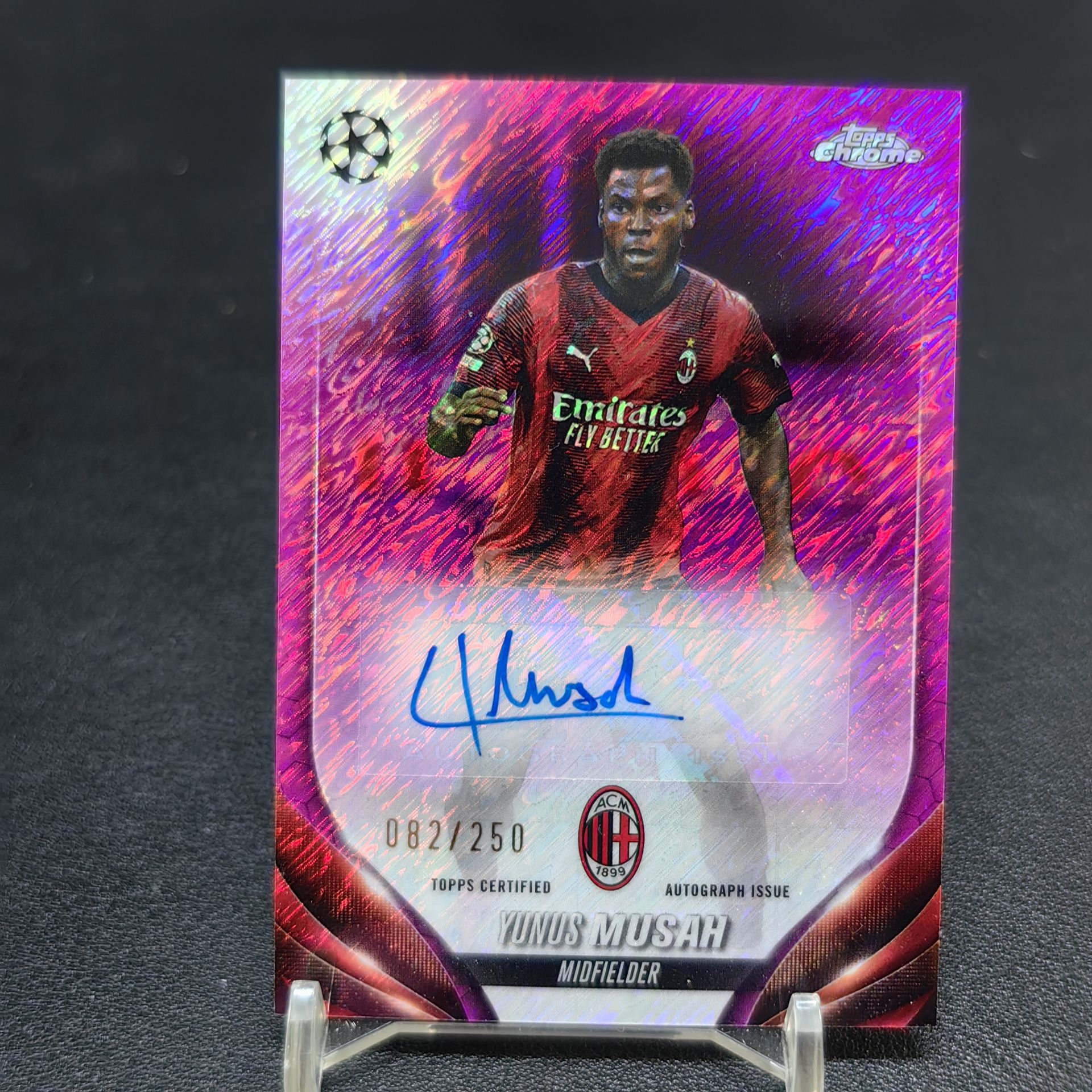 【浩行拍卖 截标预付82%】2024 topps Chrome Yunus Musah 欧冠 AC米兰 尤努斯 穆萨 签字 粉shimmer折 折射 82/250编 专收必备 瑕疵看图「火热」0523C03龘
