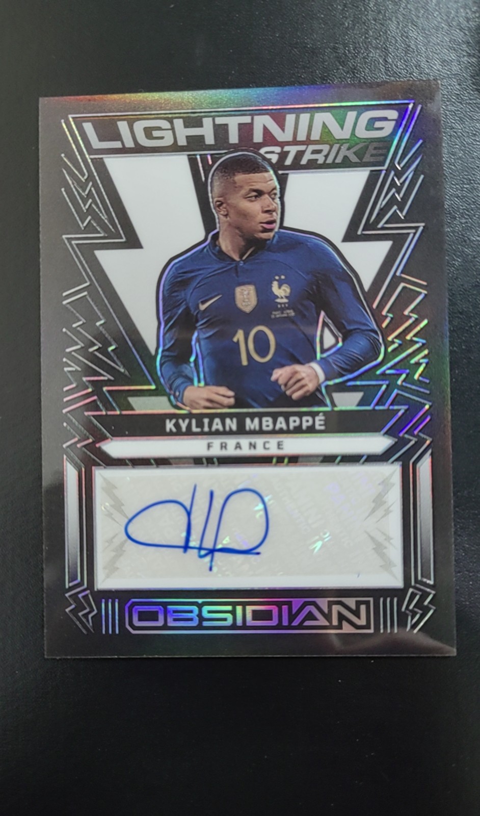 【魔都宝鉴 yyf0277】2022-23 Panini Obsidian 黑曜石 签字 贴签 132编 Lightning Strike 银折 Kylian Mbappe 姆巴佩 法国 大巴黎