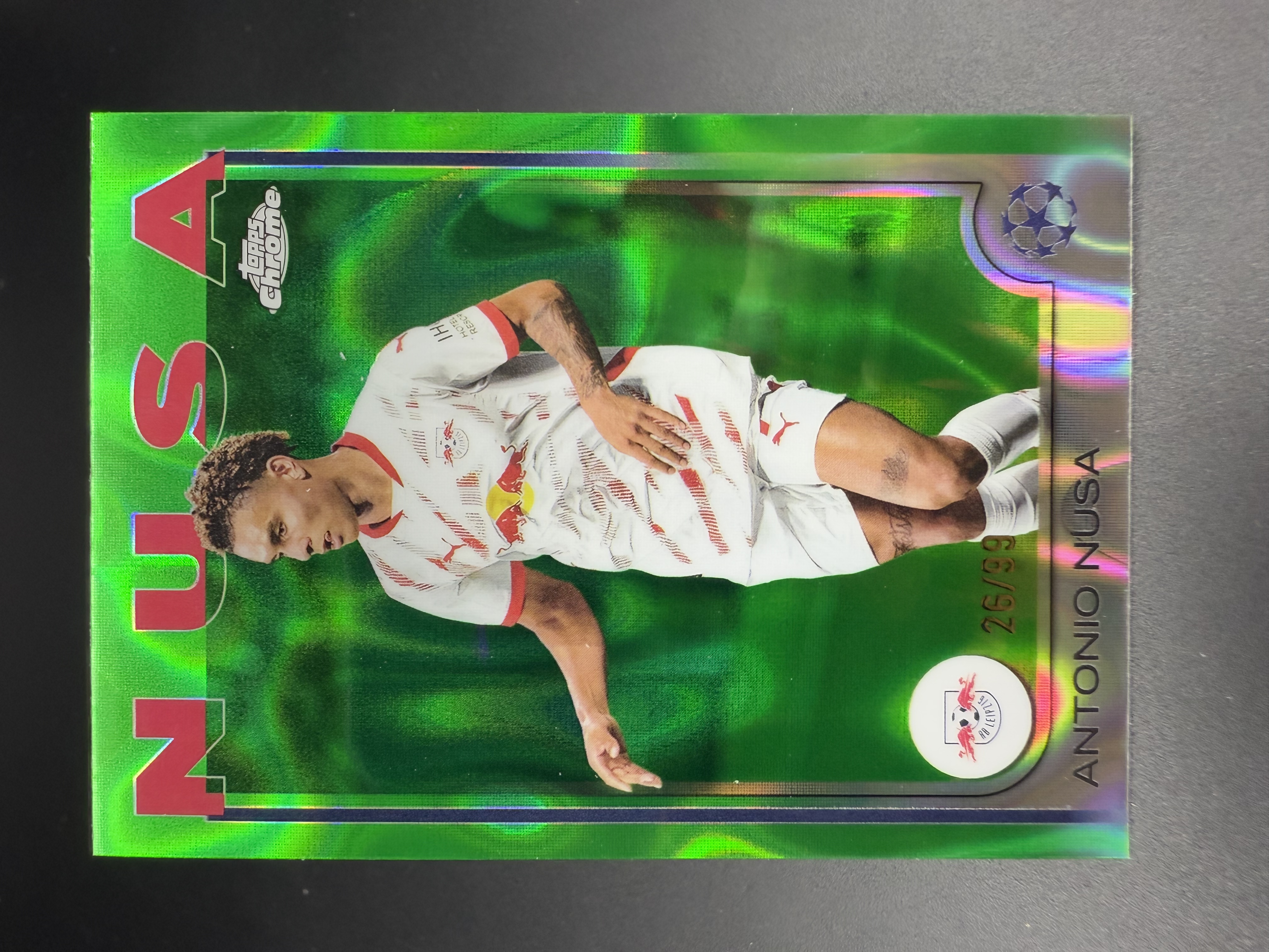 2025 Topps Chrome Antonio Nusa 【湖水蓝拍卖】安东尼奥 努萨 莱比锡红牛 TC 欧冠 绿熔岩折 26/99编 折射 专收必备 拍前请阅读详细 gumayusi
