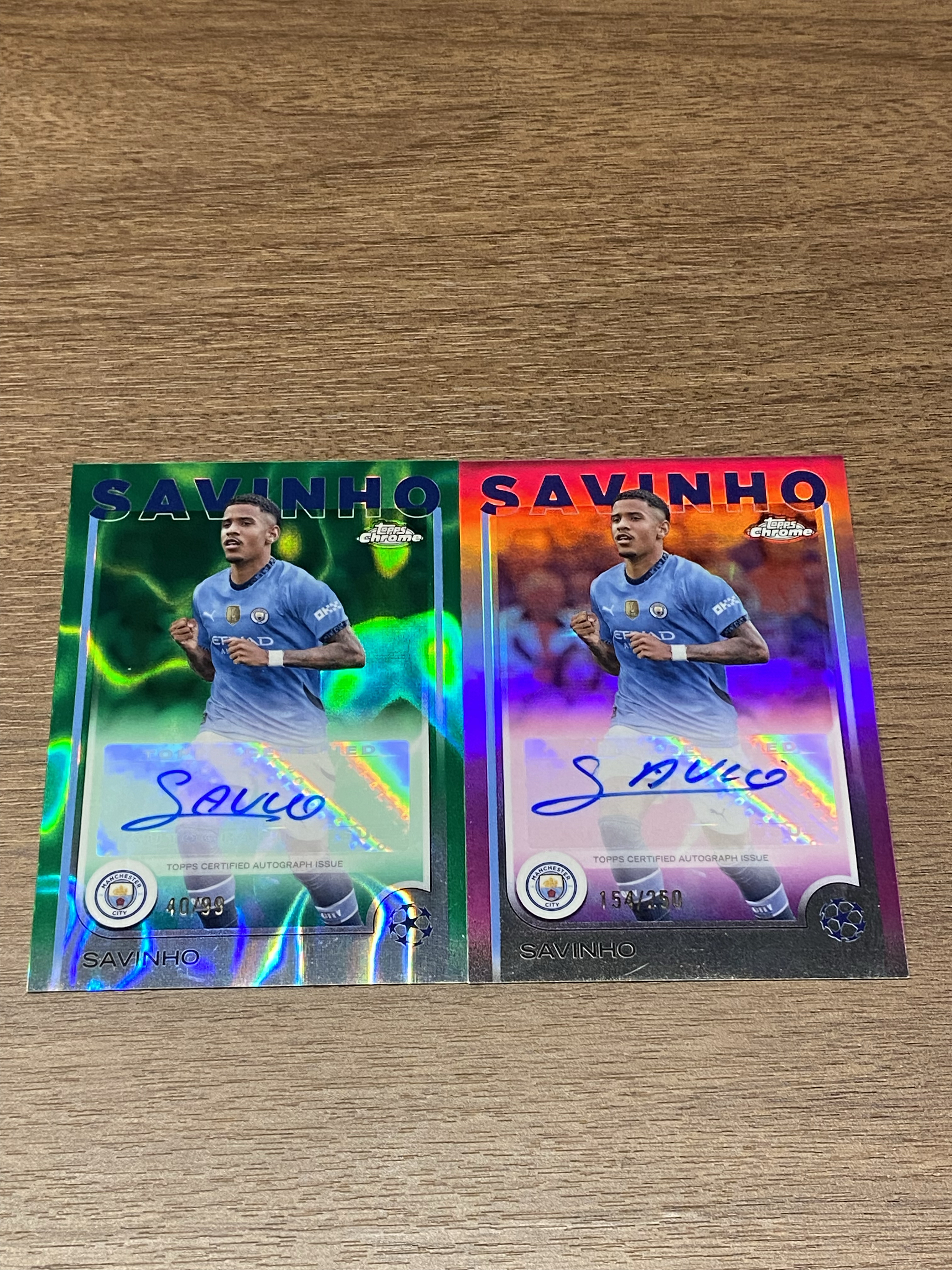 2025 Topps Chrome savinho Chrome 曼城 萨维尼奥 签字 贴签 墨迹湛蓝 粉折 250编 绿熔岩折 99编 拍卡请看描述 「粉总」
