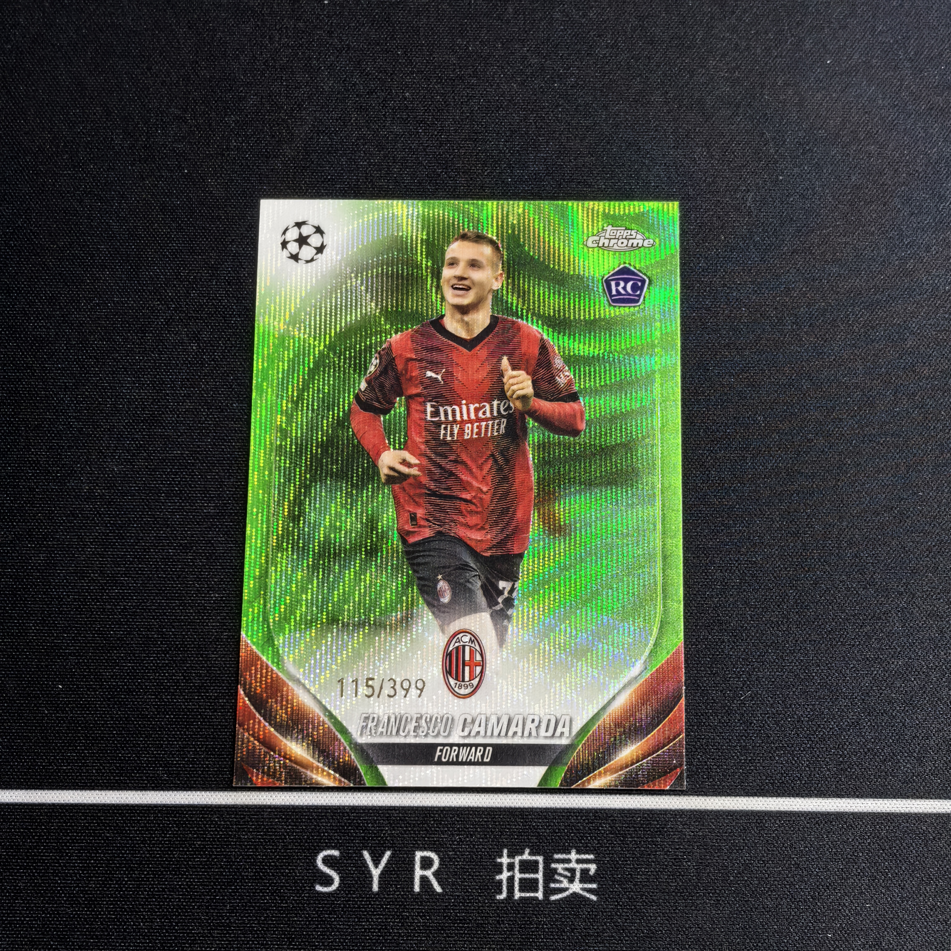 【SYR上架预付8成】 卡马尔达 RC 新秀 115/399编 Topps 2023-24 Chrome 绿波纹折 欧冠 TC FRANCESCO CAMARDA 意大利 AC米兰 -虎