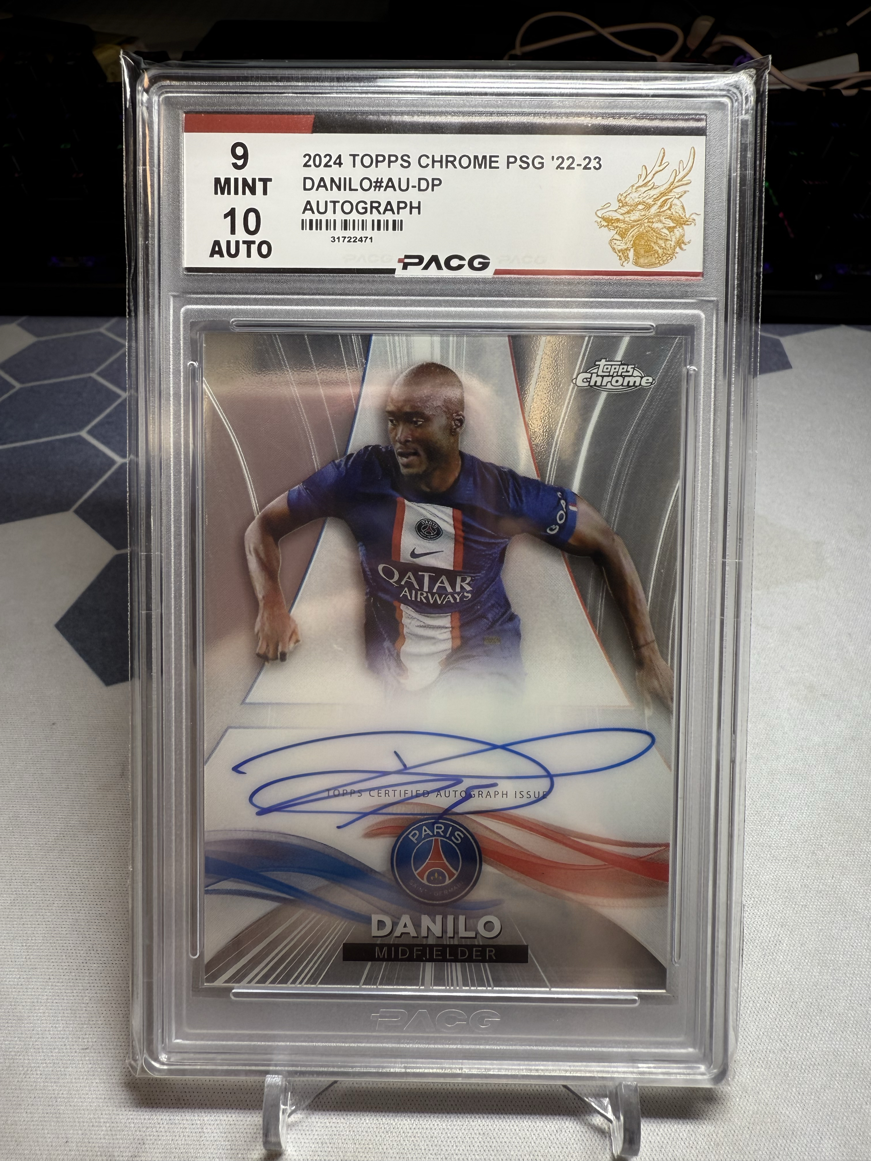 2023 Topps Chrome Danilo Pereira da Silva 达尼洛 佩雷拉 85/99编 卡签 签字 巴黎圣日耳曼 队盒 保利 PACG 评级 签字10分 卡品9分 卡品如图