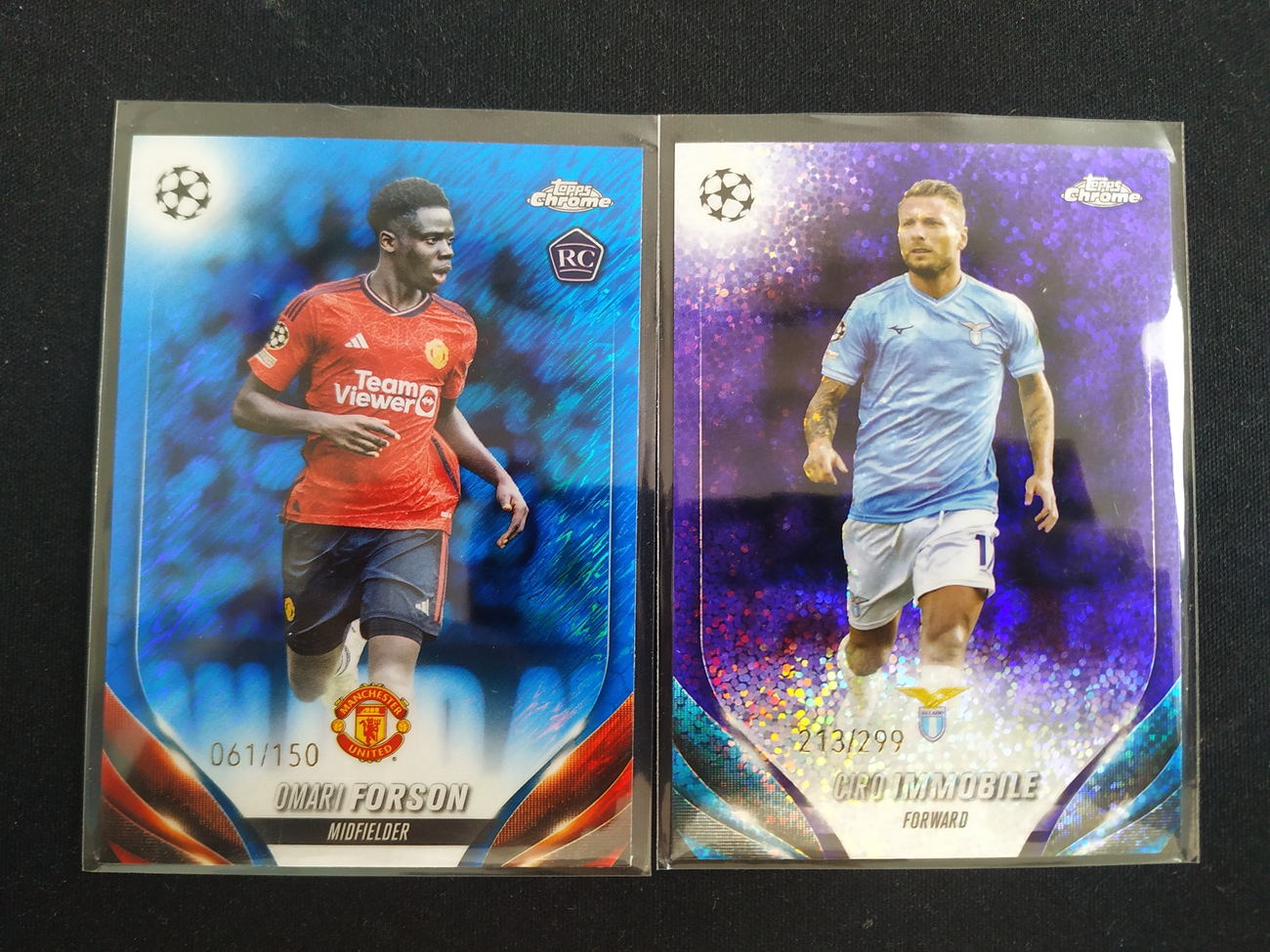 5-29【钢蛋儿拍卖】wbin 12 topps 2023-24 欧冠 欧战 Chrome 曼联 RC 新秀 蓝微光折 蓝Shimmer折 150编 紫碎闪折 299编 奥马里 福尔森 奇罗 因莫比莱 卡品如图