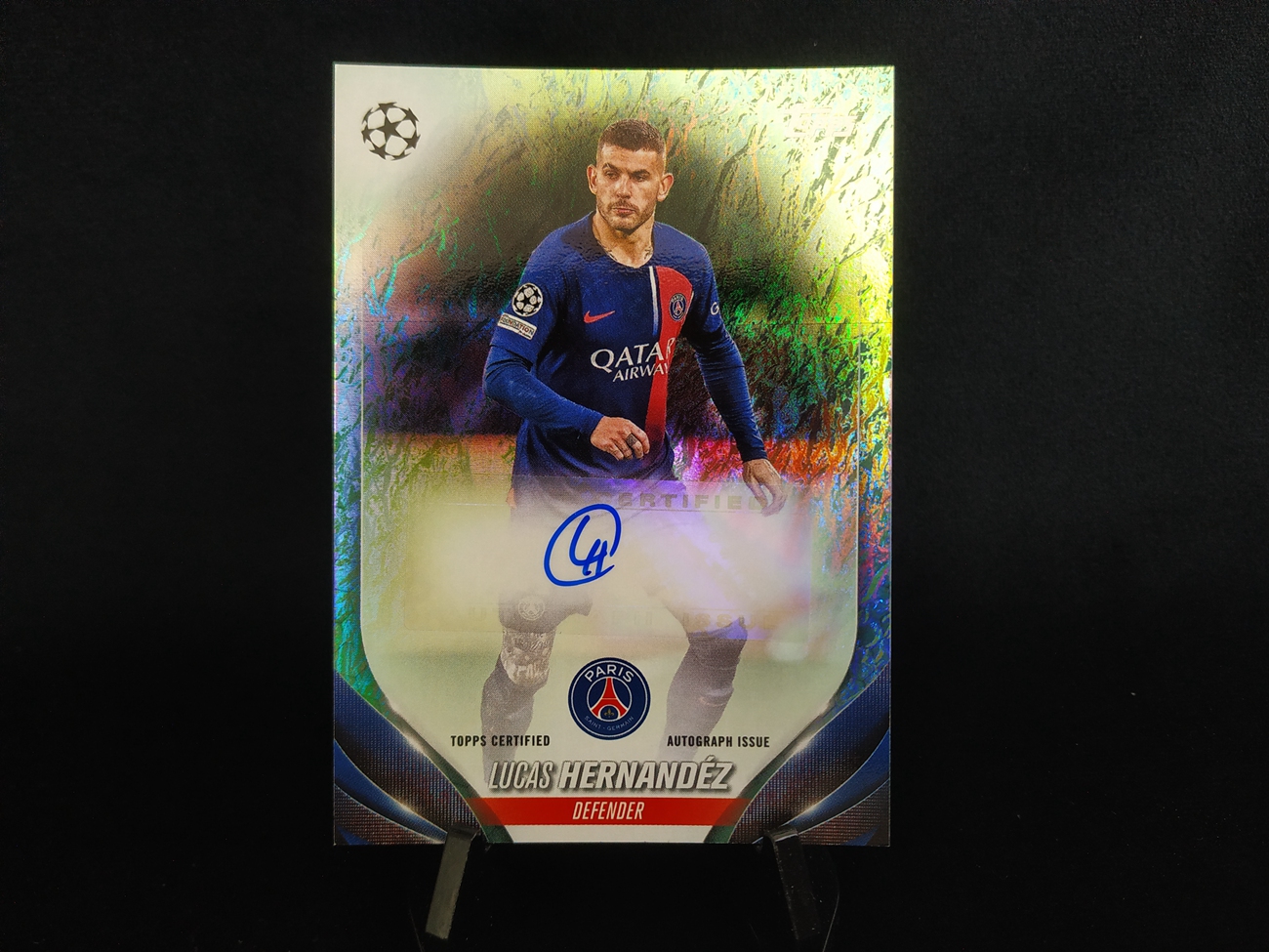 5-29【钢蛋儿拍卖】wyxtg 101 topps 2023-24 欧冠 欧战 龙年 碧玉 巴黎圣日耳曼 碧玉折 签字 卢卡 埃尔南德斯 Lucas Hernandez