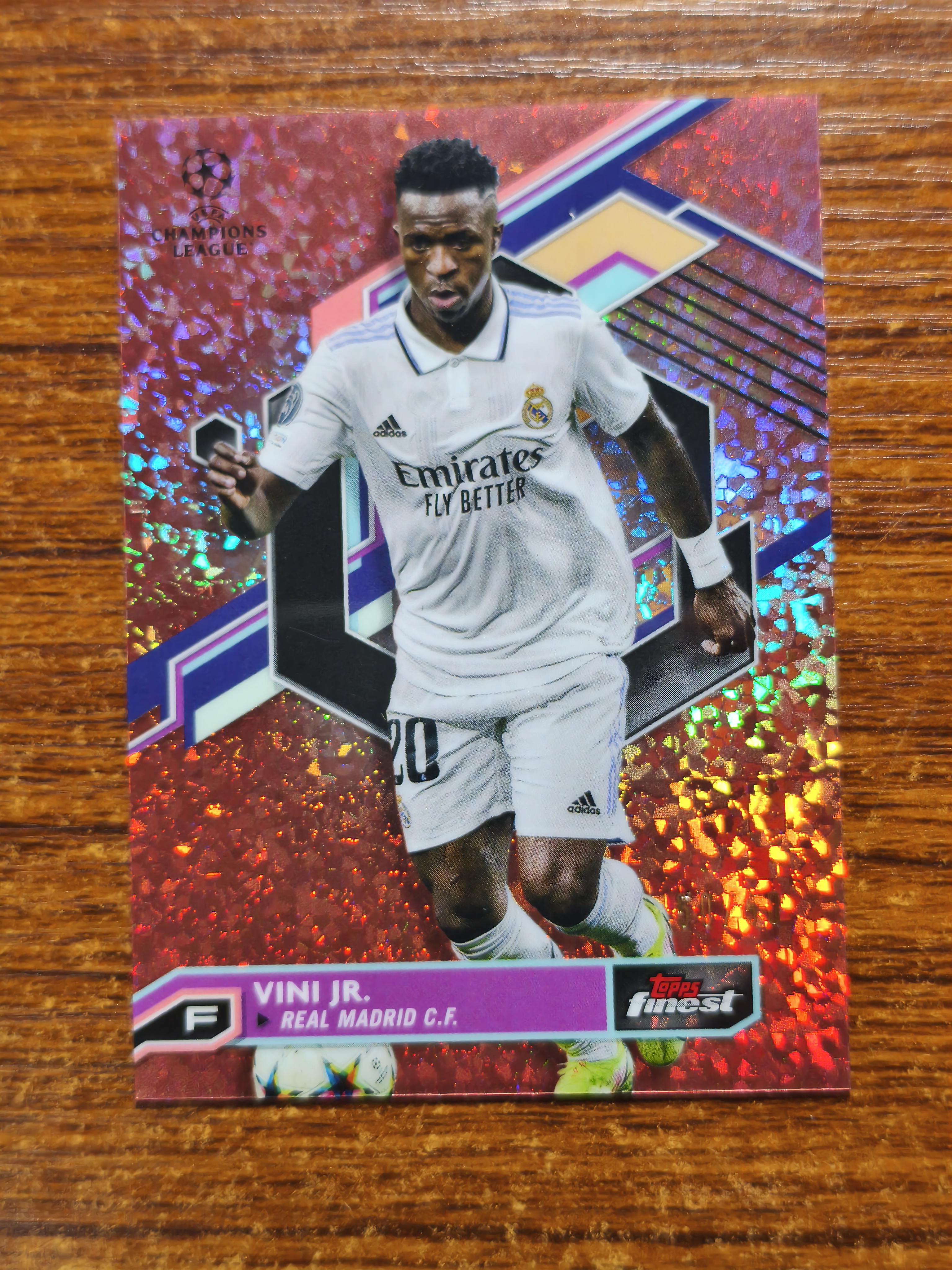 2022-23 Topps Finest Vini Jr. 欧冠 皇马 皇家马德里 维尼修斯 50/50编 尾编 玫瑰金碎点折 卡品如图 05241