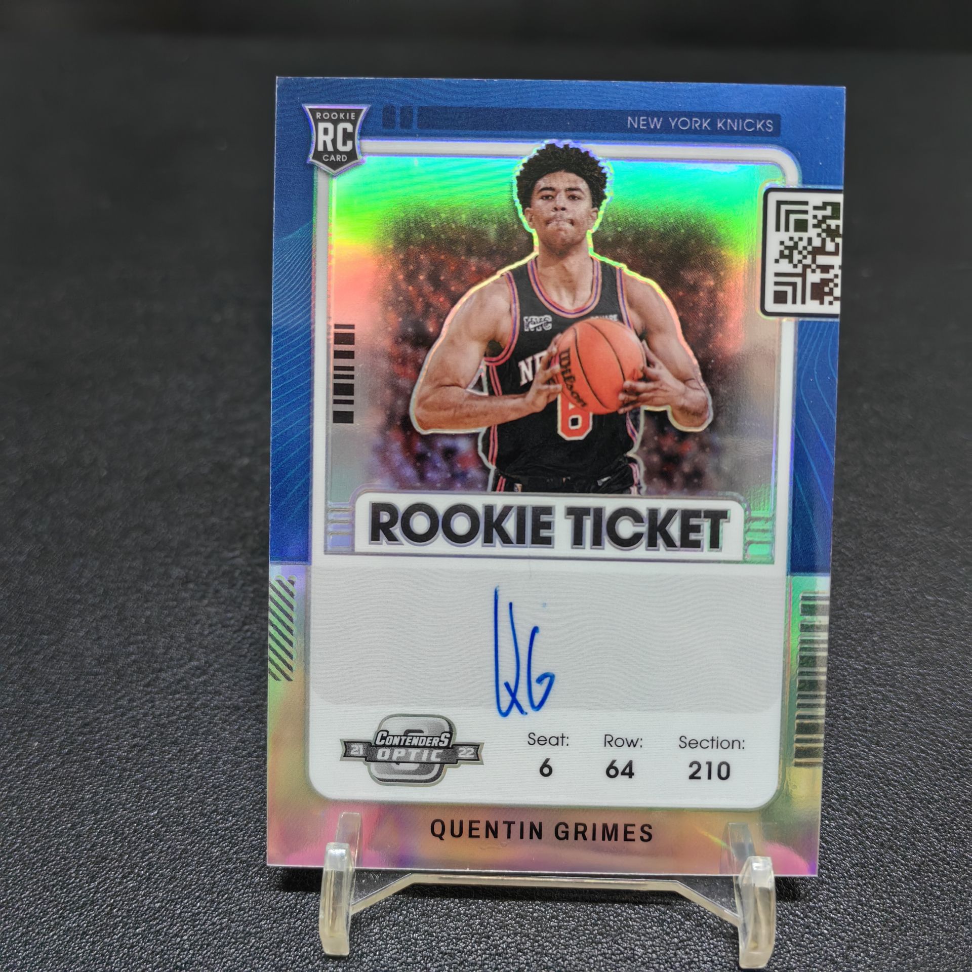 【浩行拍卖 截标预付82%】2021-22 panini contenders optic Quentin Grimes 球票 尼克斯 昆廷 格兰姆斯 新秀 RC 签字 卡签 银折 折射 变化版 专收必备 瑕疵看图「草木」0524D04龘