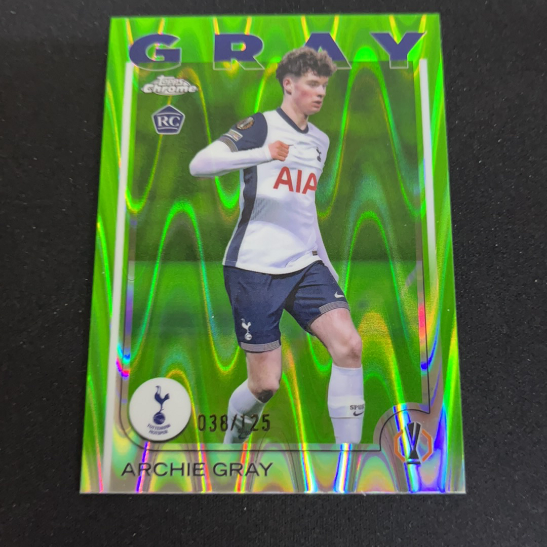2025 Topps Chrome archie gray RC 【SS】欧冠 TC 热刺 阿奇 格雷 新秀 绿波纹折射 125编 限量 收藏必备【YFAN052403】