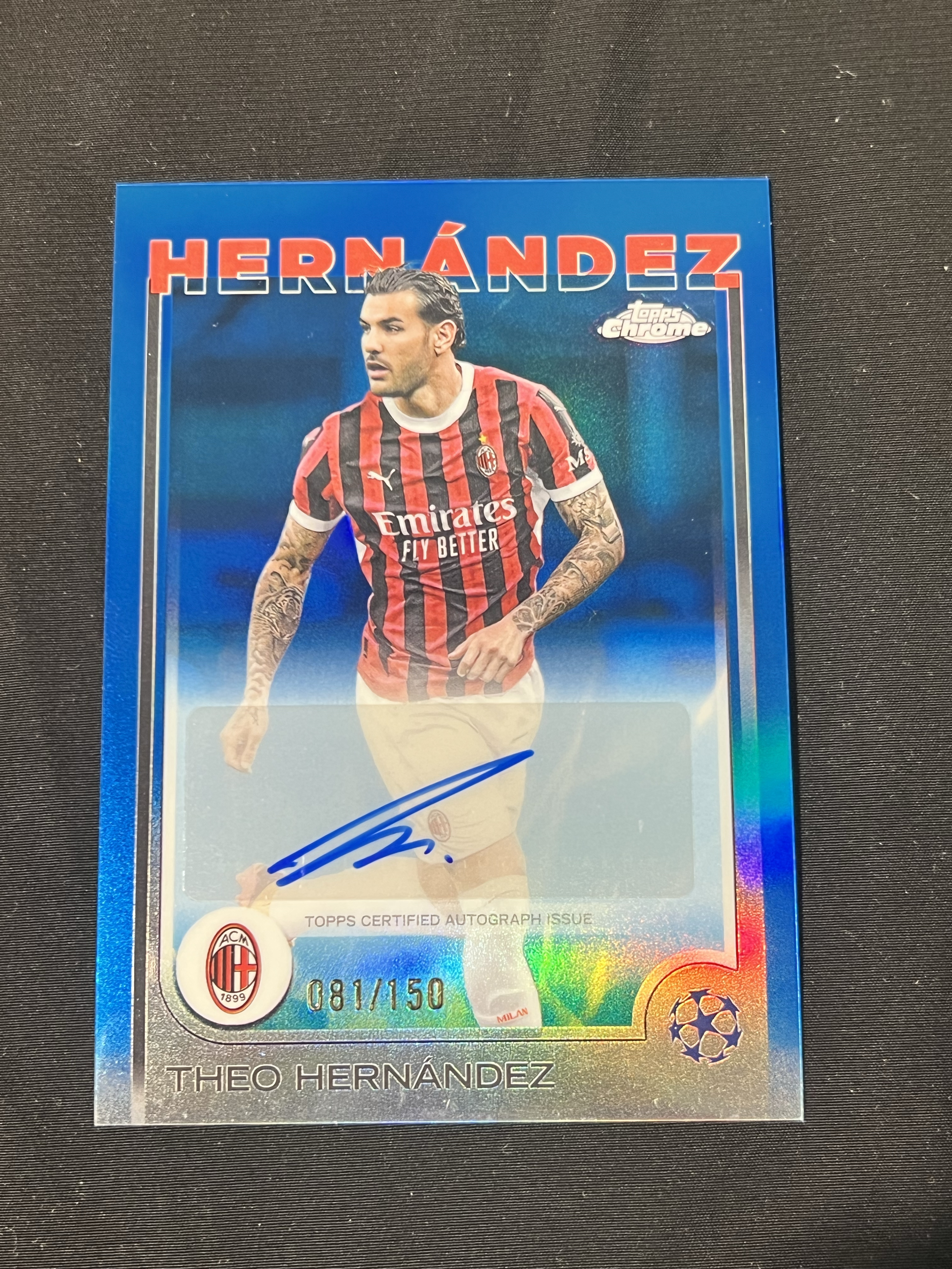 2024-25 Topps Chrome Theo Hernández 欧冠TC 法国AC米兰 特奥 150编 蓝折 签字 收藏必备 火神