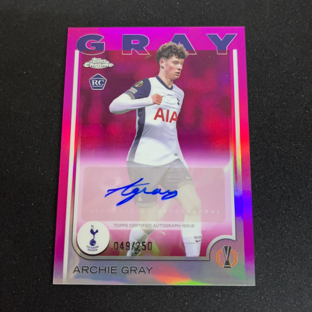 2025 Topps Chrome Archie gray RC 【SS】欧冠 TC 热刺 阿奇 格雷 新秀 签字 粉折射 250编 限量 收藏必备【YCHX052414】