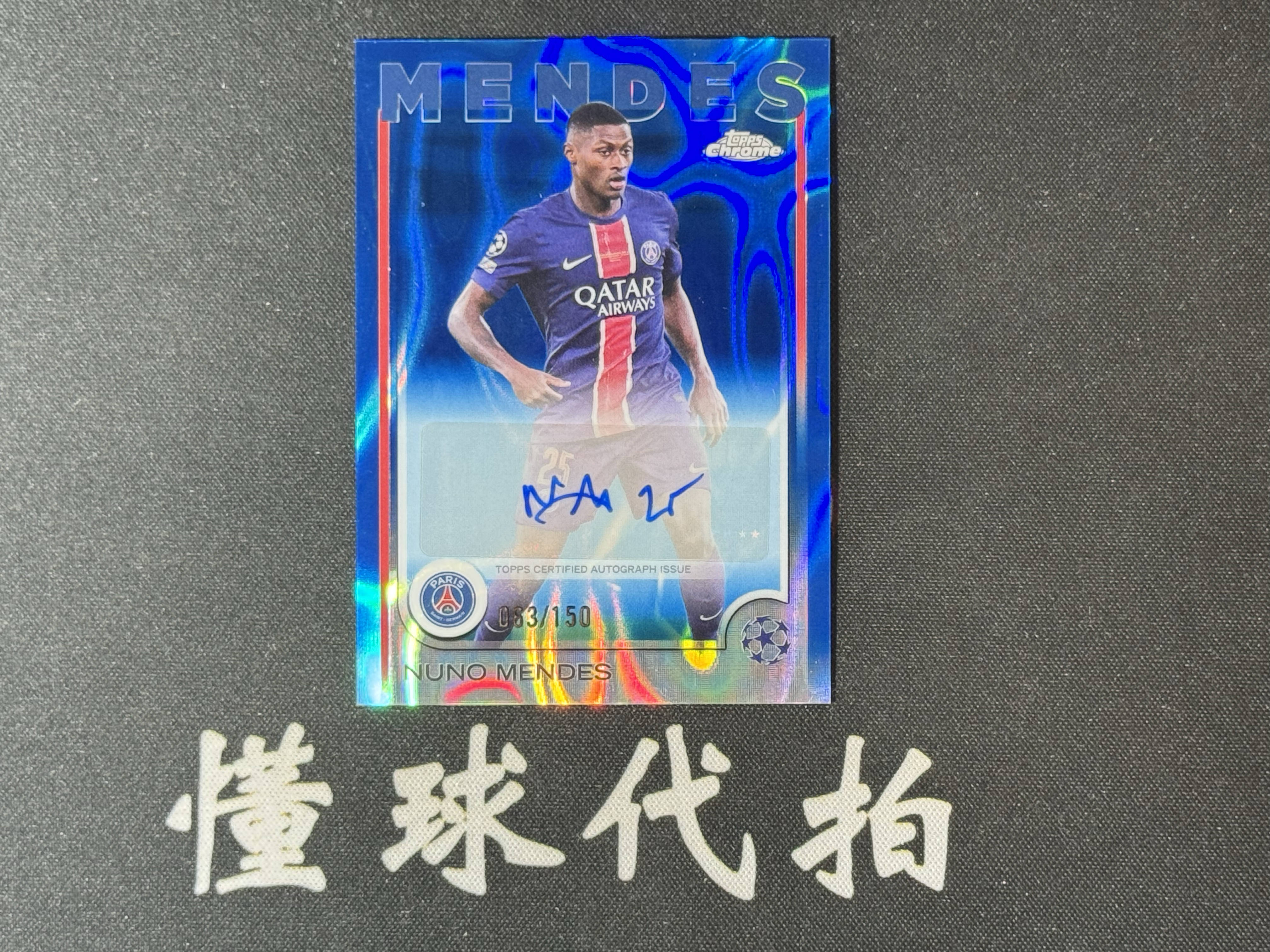 【懂球代拍】2024-25 topps 欧冠chrome 限量 150编 NUNO MENDES门德斯 巴黎 葡萄牙🇵🇹 签字 蓝熔岩折射 值得收藏 DQ033B 004