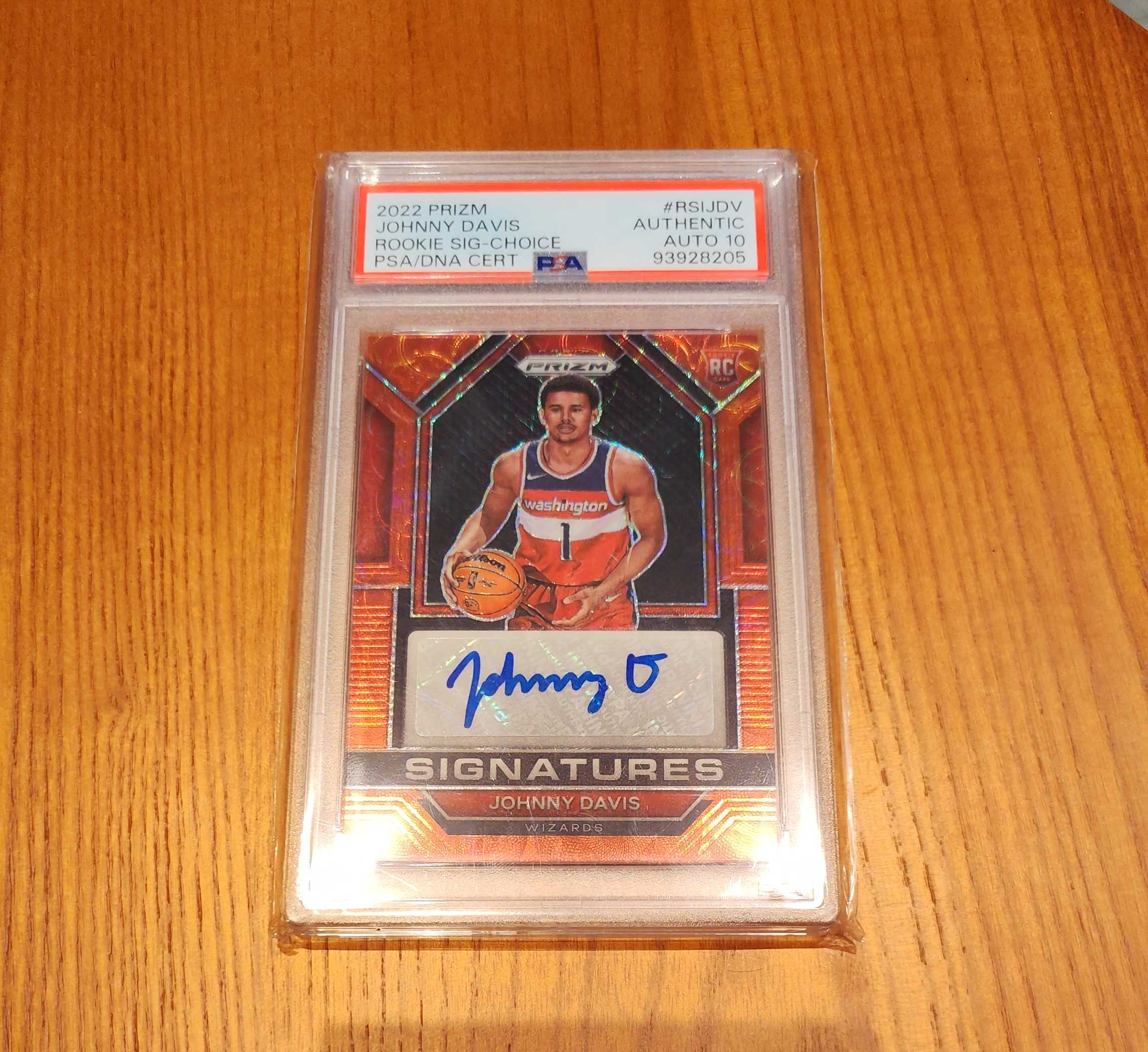 2022 Panini PRIZM ROOKIE SIGNATURES Johnny Davis RC 约翰 戴维斯 新秀 奇才 签字 贴签 红圈圈折 折射 PSA签字10分 卡品如图