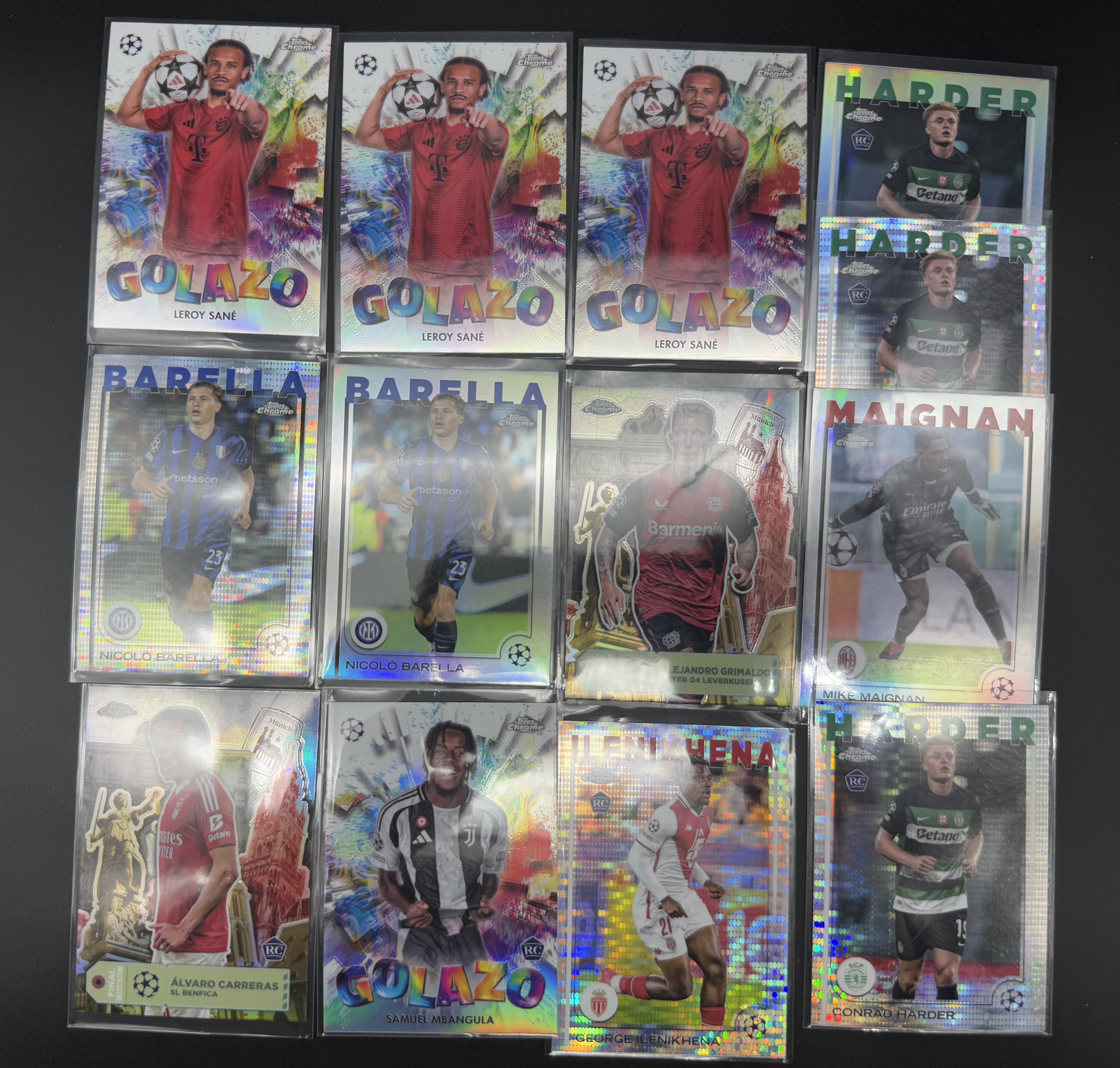 【湖水蓝拍卖】2025 Topps Chrome 巴雷拉 萨内 哈德 姆班古拉 等 国米 拜仁 尤文 AC米兰 新秀RC 银折 特卡 折射 12张LOT 烟云