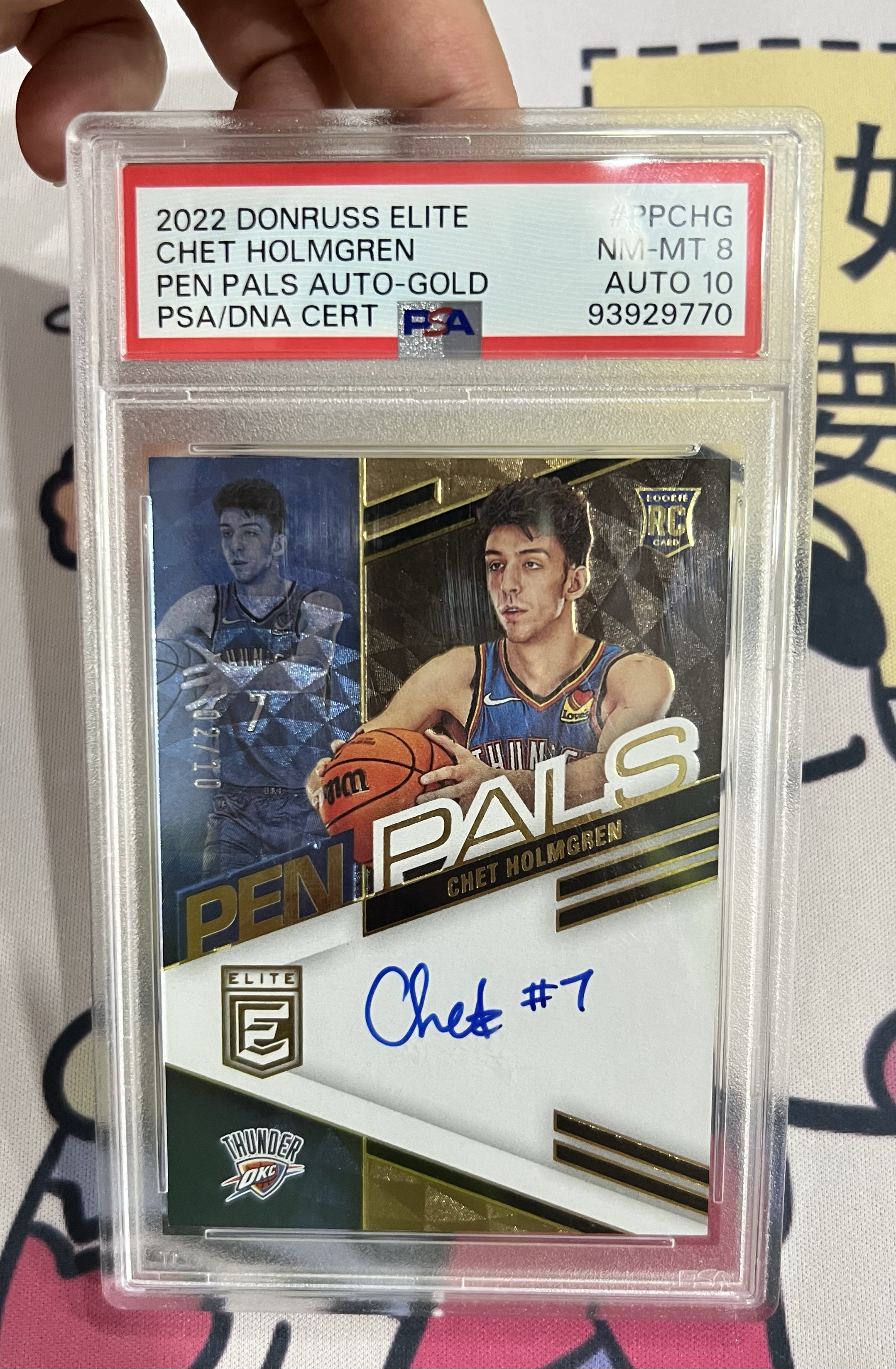 22-23 Elite Chet Holmgren RC 精英箱货大HIT 10编金折签 雷霆核心当家 切特 霍姆格伦 2/10编 正新秀 签字 卡签 PP签 PSA8/10分 亚历山大杰伦瑕疵如图