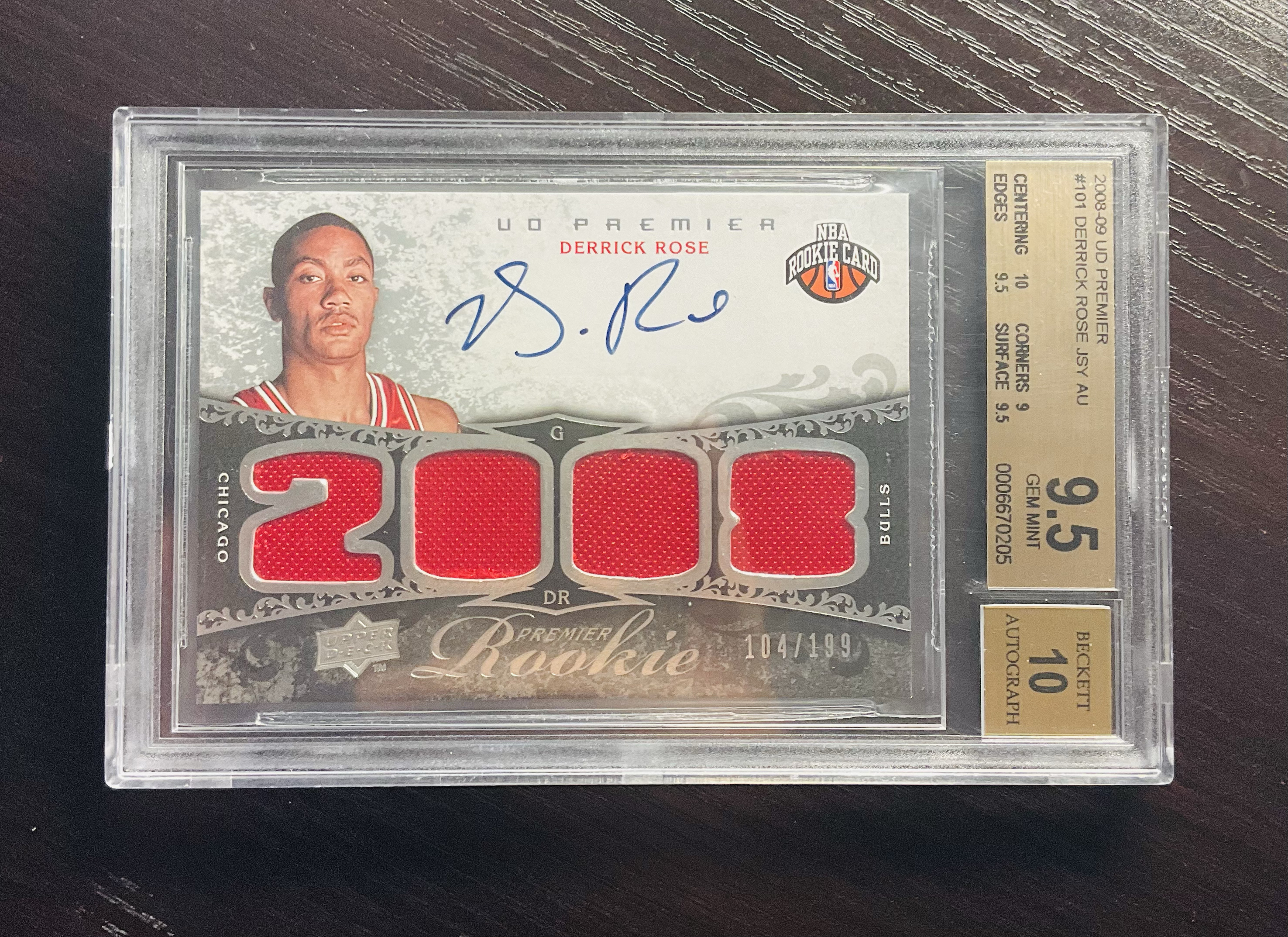 2008-09 Upper Deck Prime Derrick Rose RC Ud 公牛 德里克 罗斯 新秀 卡签 199编 bgs9.5 亲穿球衣物料 RJA 签字 风城玫瑰