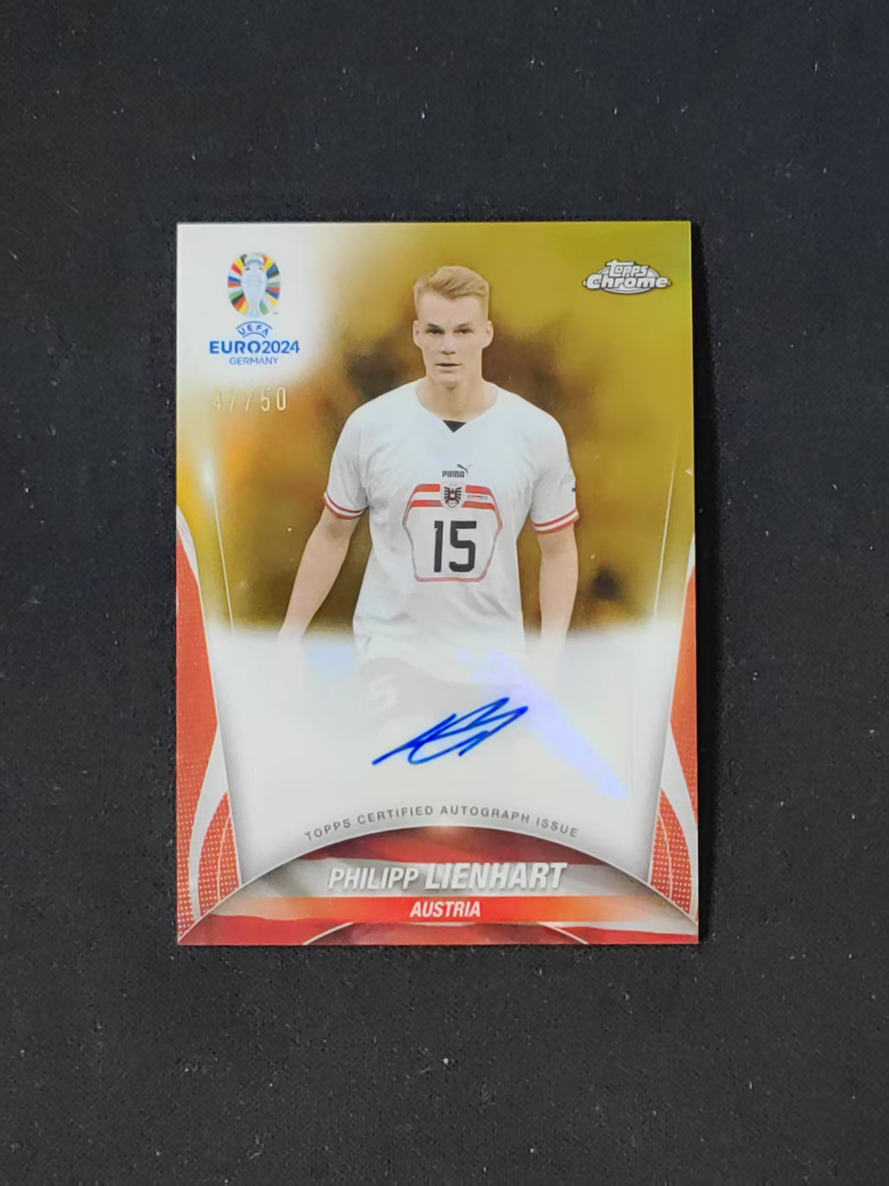 2024 Topps Chrome Philipp Lienhart 【阿泽拍卖tiffany】tc系列 欧洲杯 奥地利 林哈特 47/50编 签字 金折