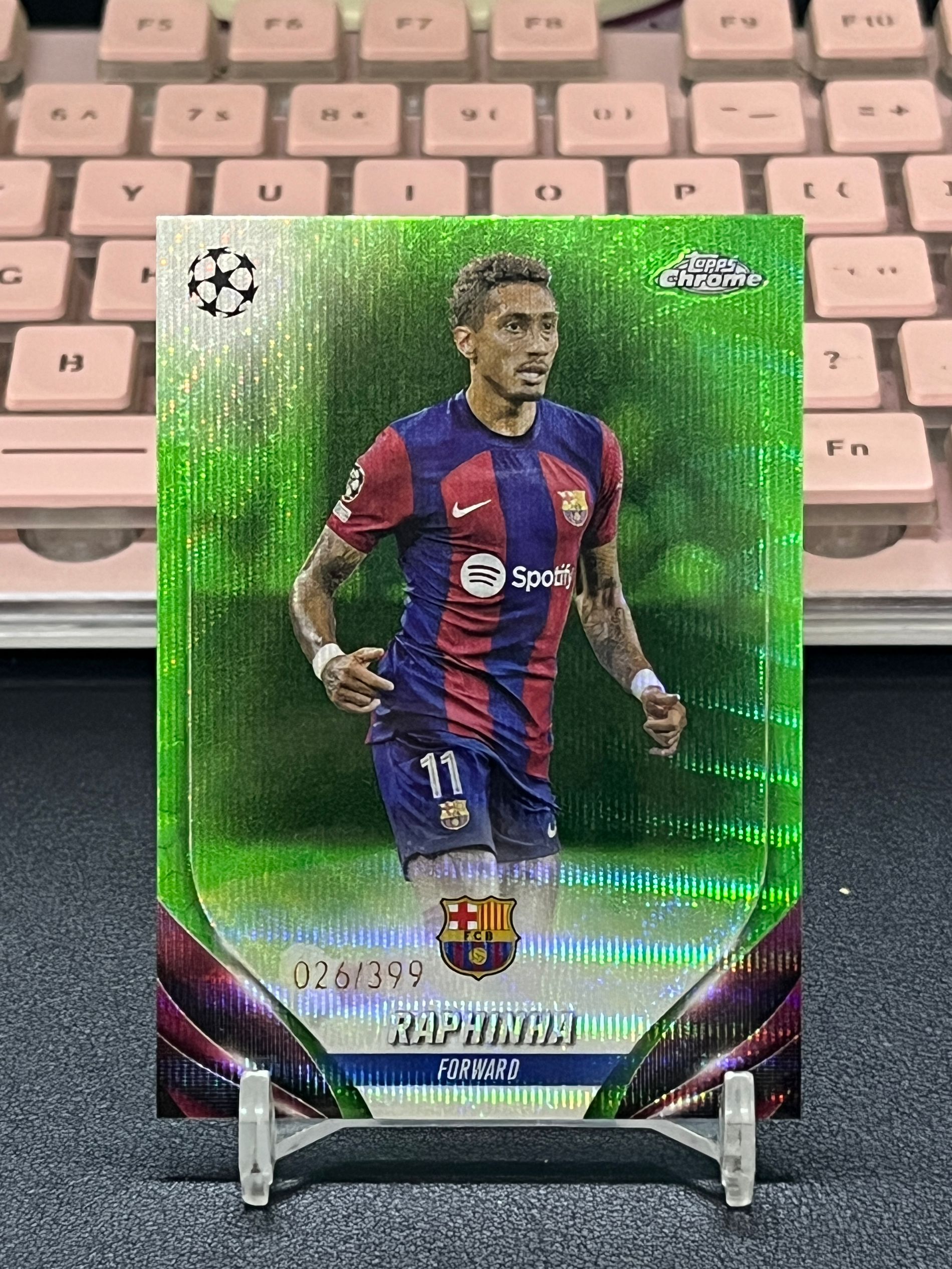 【浩行拍卖 截标预付82%】2024 topps chrome raphinha 欧冠 巴塞罗那 拉菲尼亚 绿波纹折 折射 26/399编 专收必备 瑕疵看图「维颜」0525F01祺