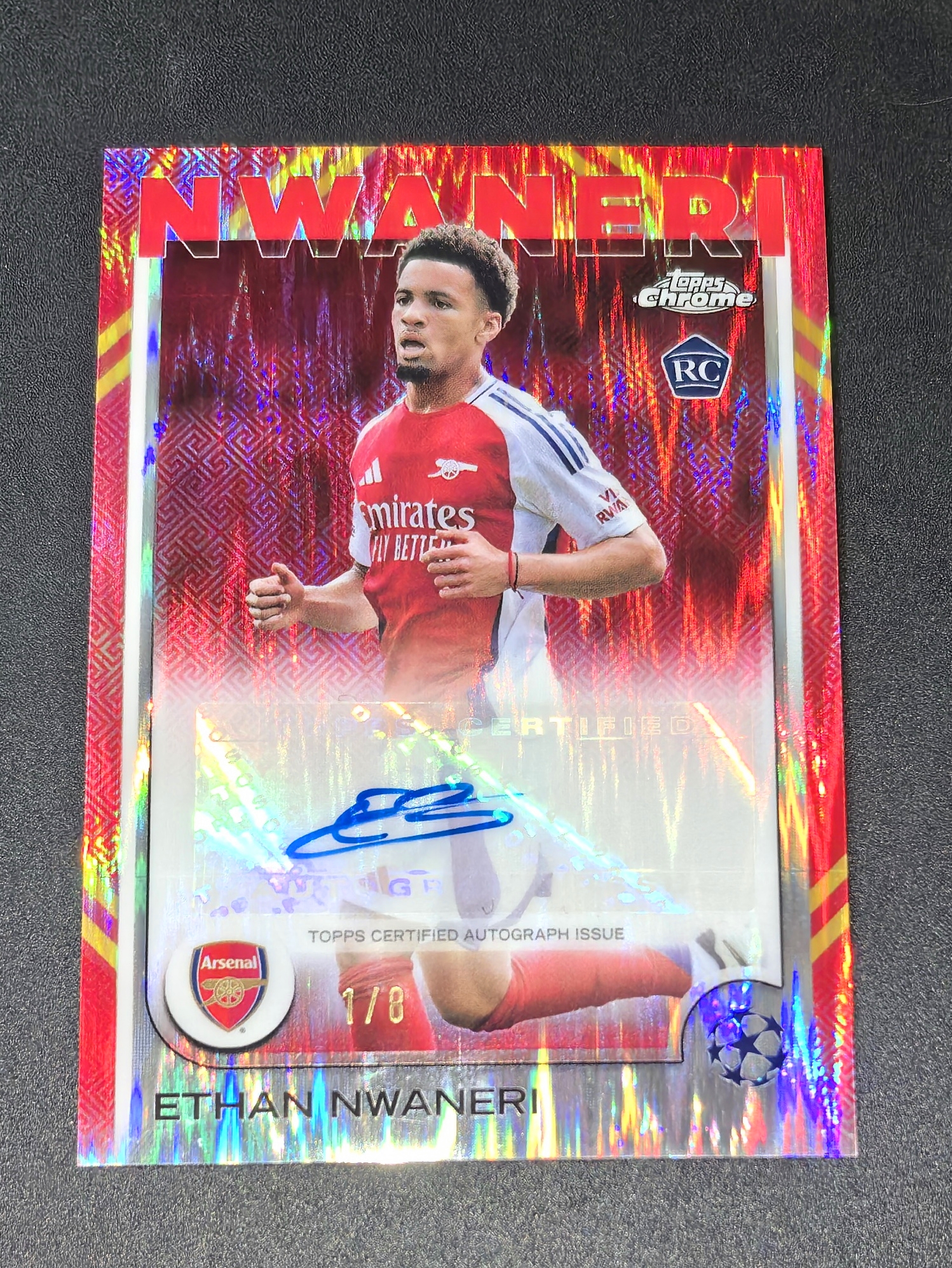 2025 Topps Chrome Ethan Nwaneri RC 【麦考拍卖】m 恩瓦内里 限量1/8编首编 新秀 红包 hongbao 瀑布折射 签字卡 签名卡 color match 瑕疵如图
