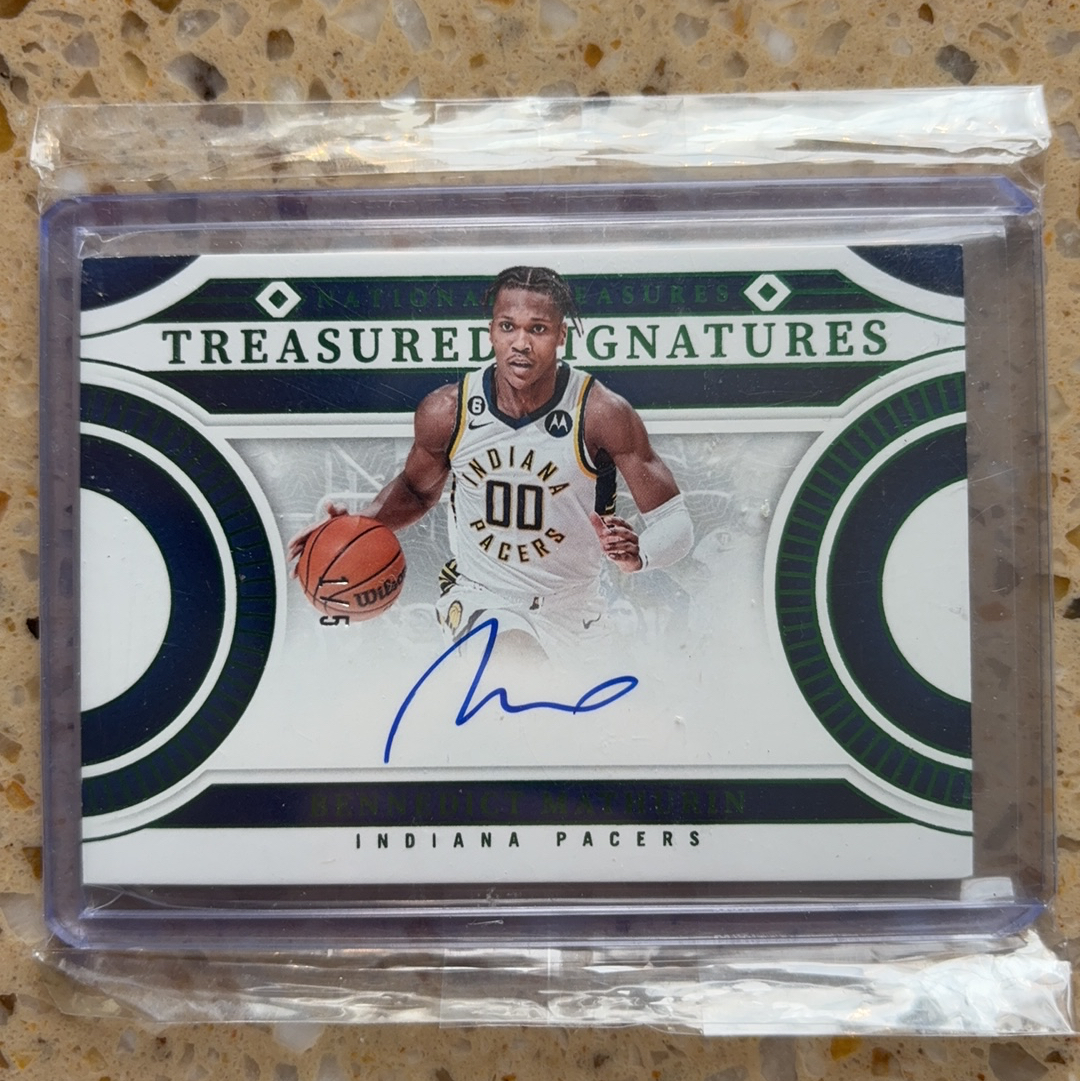 2023-24 Panini National Treasures Bennedict Mathurin 国宝 步行者 马瑟林 马图林 1/5编 首编 绿平行 签字 卡签 卡品如图