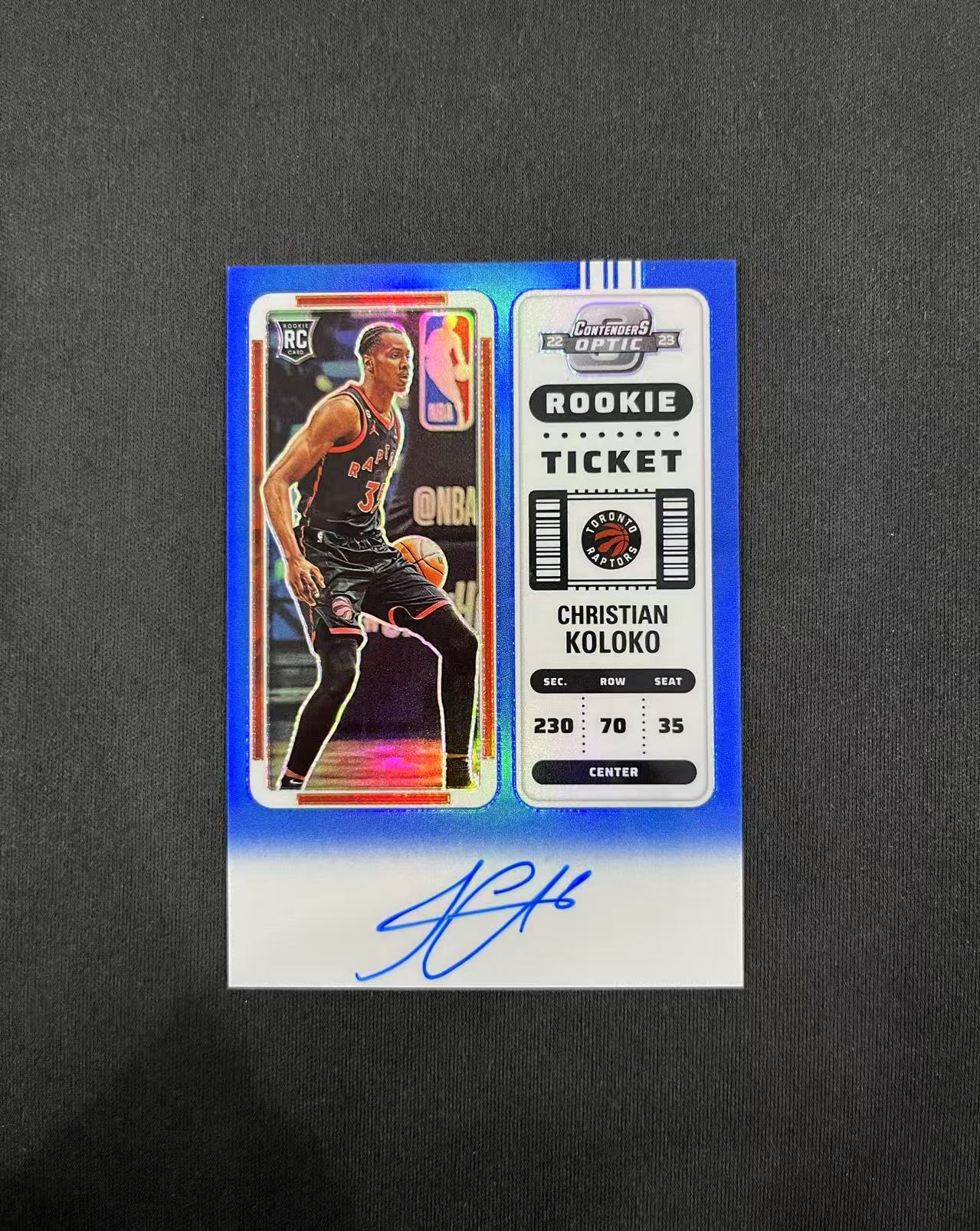 【长安代卖 截标预付80%】2022-23 Panini Contenders Optic 球票op 猛龙 新秀RC Christian Koloko 克里斯蒂安科洛克 新秀蓝折签字 卡签 26/49编 微瑕看大图【吉娃娃】(S)(U)