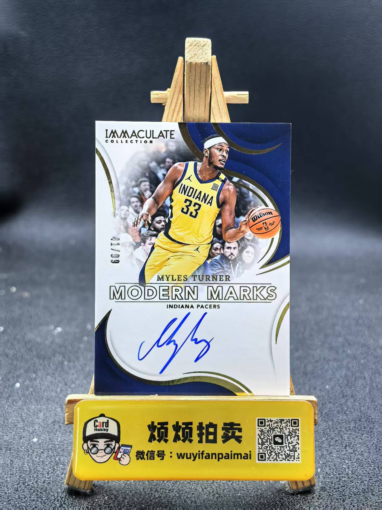 2023-24 Panini imm Myles Turner 【烦烦拍卖】爱咪咪 步行者 迈尔斯特纳 签字卡签 41/99编 收藏必备 瑕疵如图【养乐多】D1