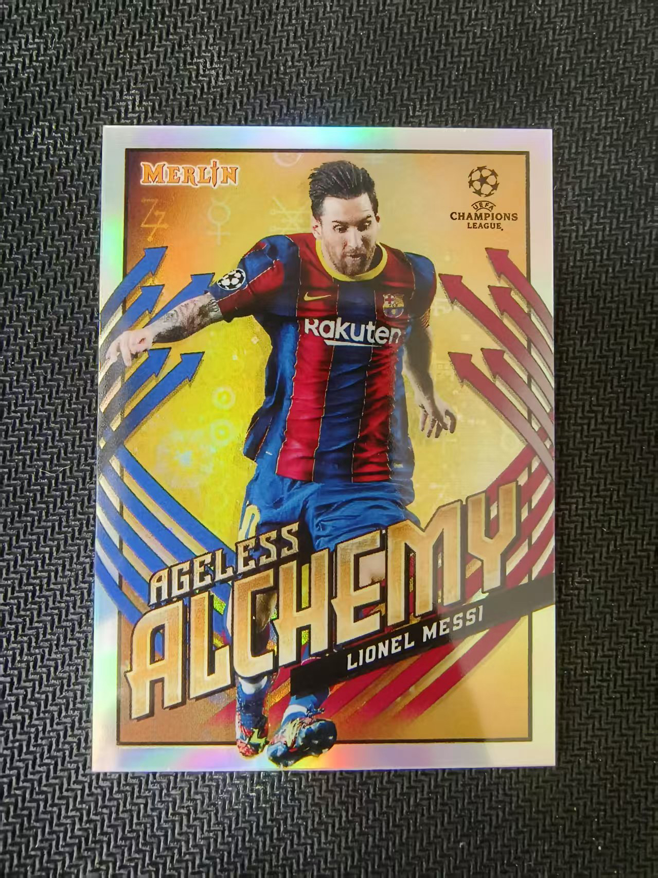 2020-21 Topps Merlin 梅林 欧冠 欧战 Lionel Messi 梅西 巴萨 阿根廷 Ageless Alchemy 炼金术特卡 银折 折射 不保卡品 实卡美丽 收藏必备 ch