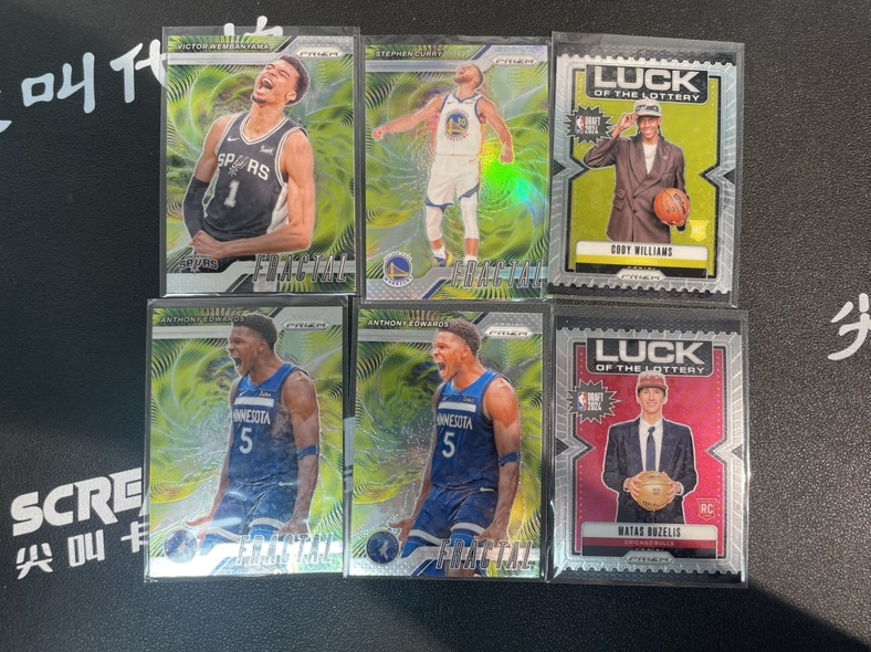 一百四二 2024-25 Panini Prizm 安东尼 爱德华兹 维克托 文班亚马 斯蒂芬 库里 马塔斯 布泽利斯 科迪 威廉姆斯 带队 含新秀 特卡 共6张 lot 打包 不保卡品 可乐