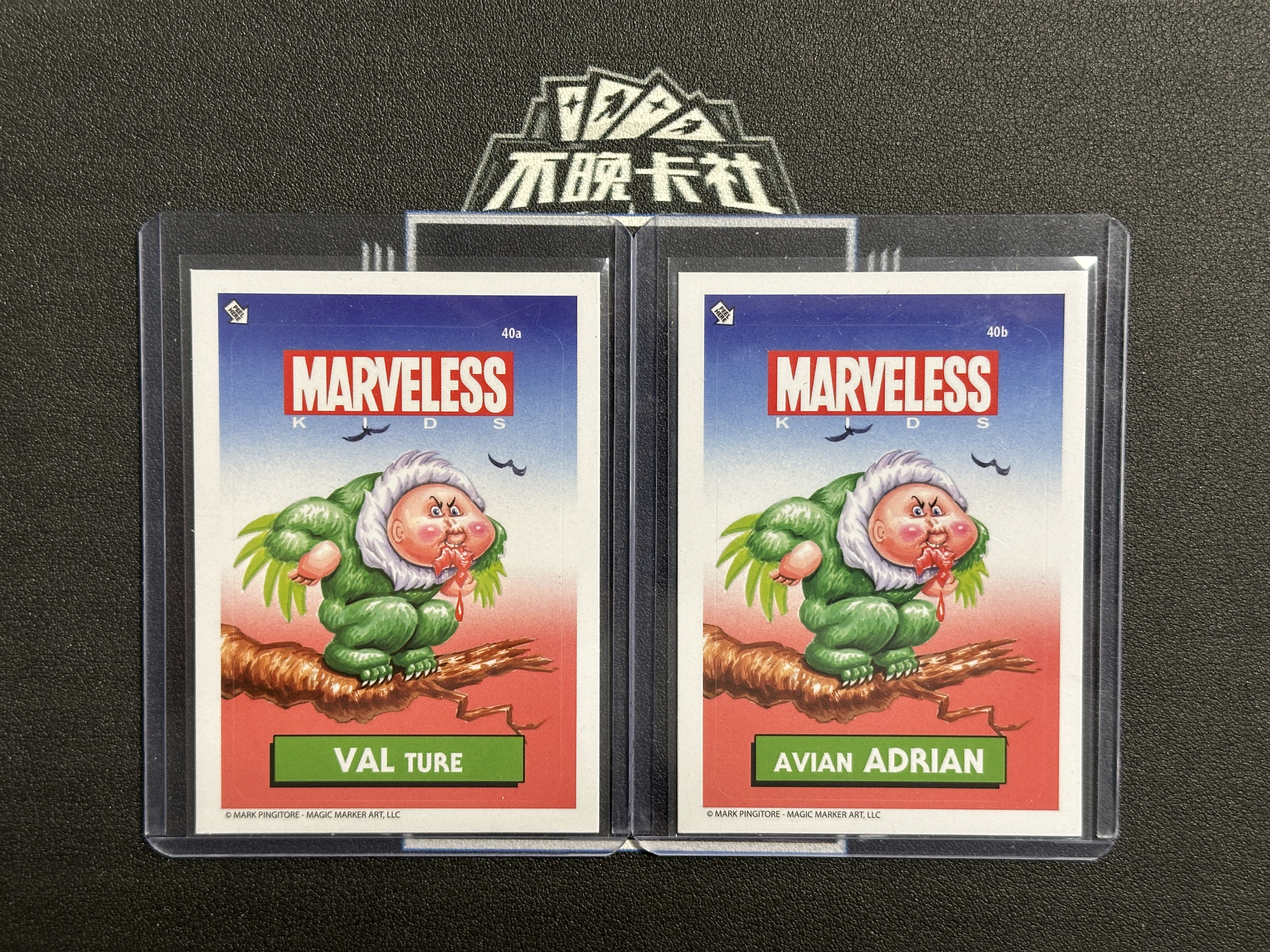 【不晚卡社不支持累计与到付】2019 Garbage Pail Kids 垃圾桶小子 GPK 画师盒 MARVELESS 恶搞 漫威人物 秃鹫 AB套 2张LOT打包 稀有 卡品如图 飞飞