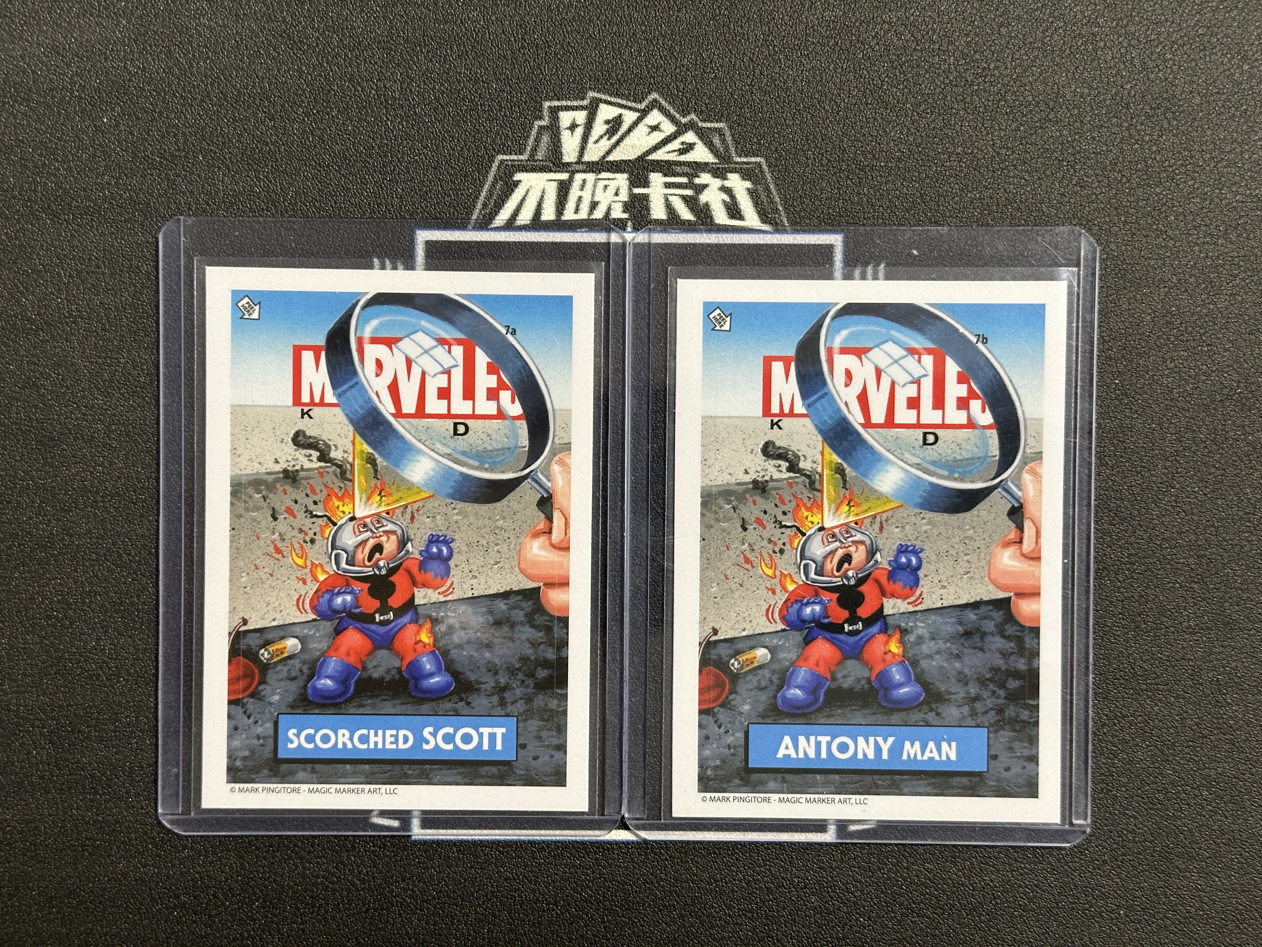 【不晚卡社不支持累计与到付】2019 Garbage Pail Kids 垃圾桶小子 GPK 画师盒 MARVELESS 恶搞 漫威人物 蚁人 AB套 2张LOT打包 稀有 卡品如图 飞飞