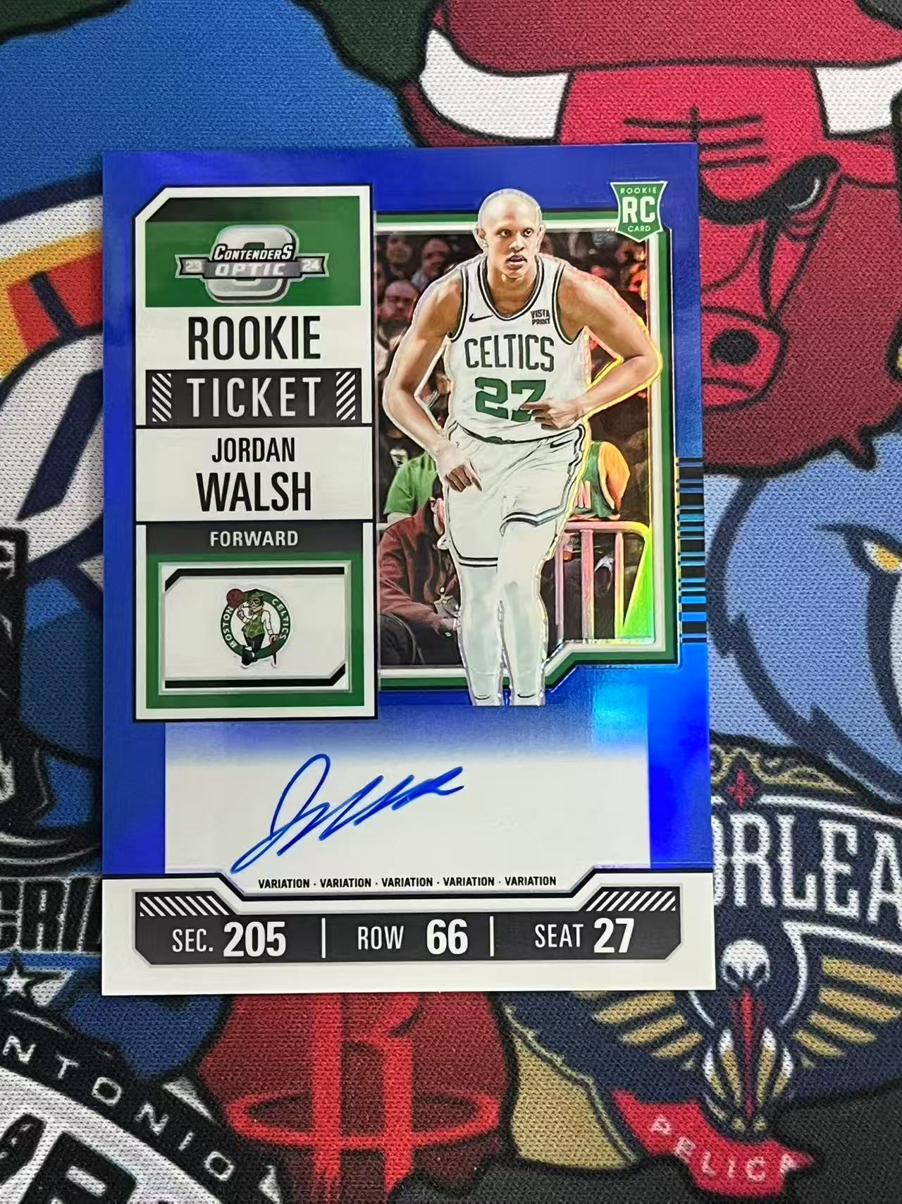 【0手续费接寄拍】2023-24 PANINI CONTENDERS OPTIC 球票系列 凯尔特人 新秀RC 乔丹沃尔什 49编 签字卡 卡签 变化版新秀球票签字卡 蓝折 折射【瑞士卷拍卖】
