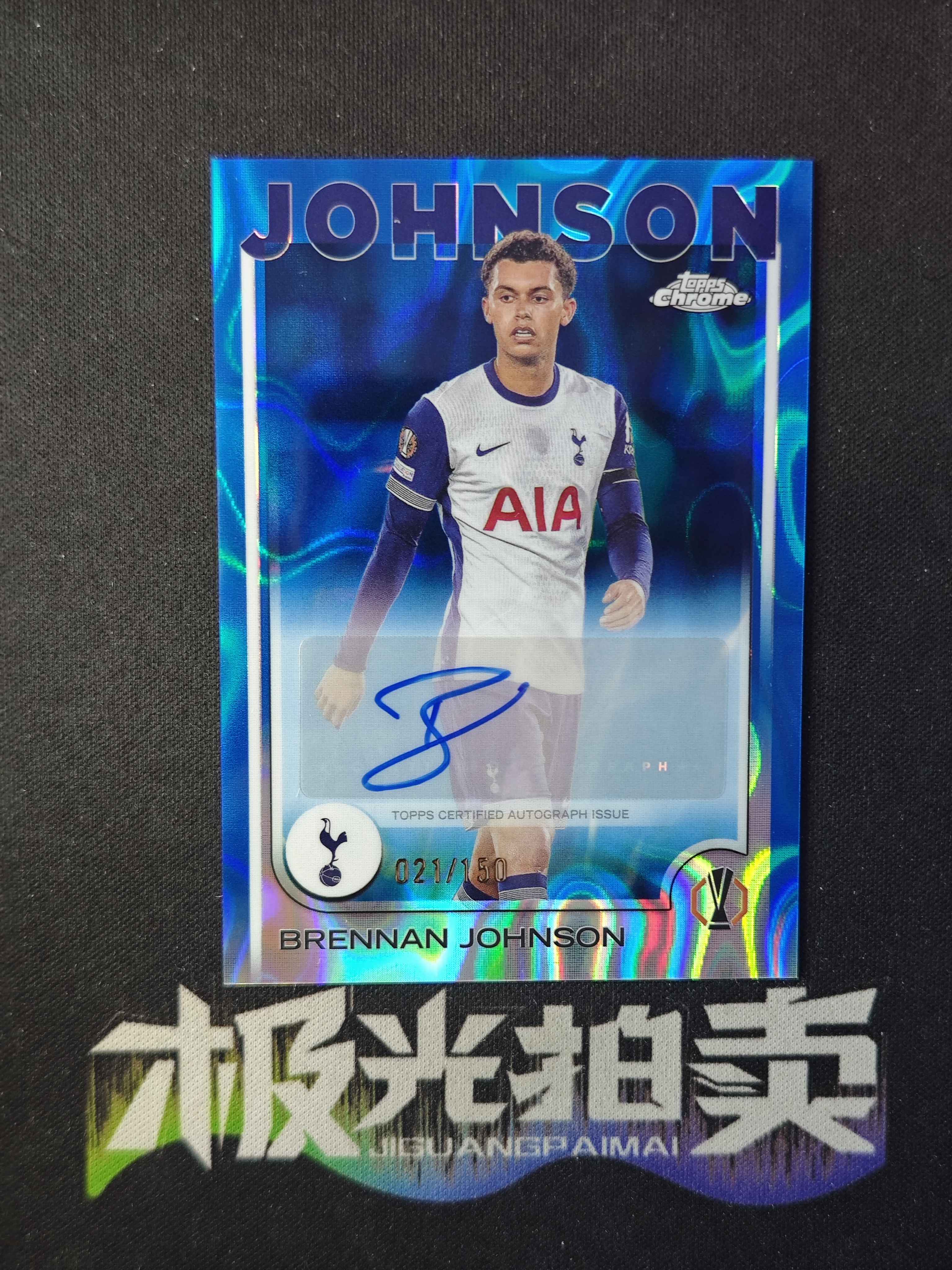 2024-25 Topps Chrome Brennan Johnson TC 布伦南约翰逊 021/150编 签字 蓝熔岩折签 完美签 托特纳姆热刺 实卡精美 收藏必备 WG025