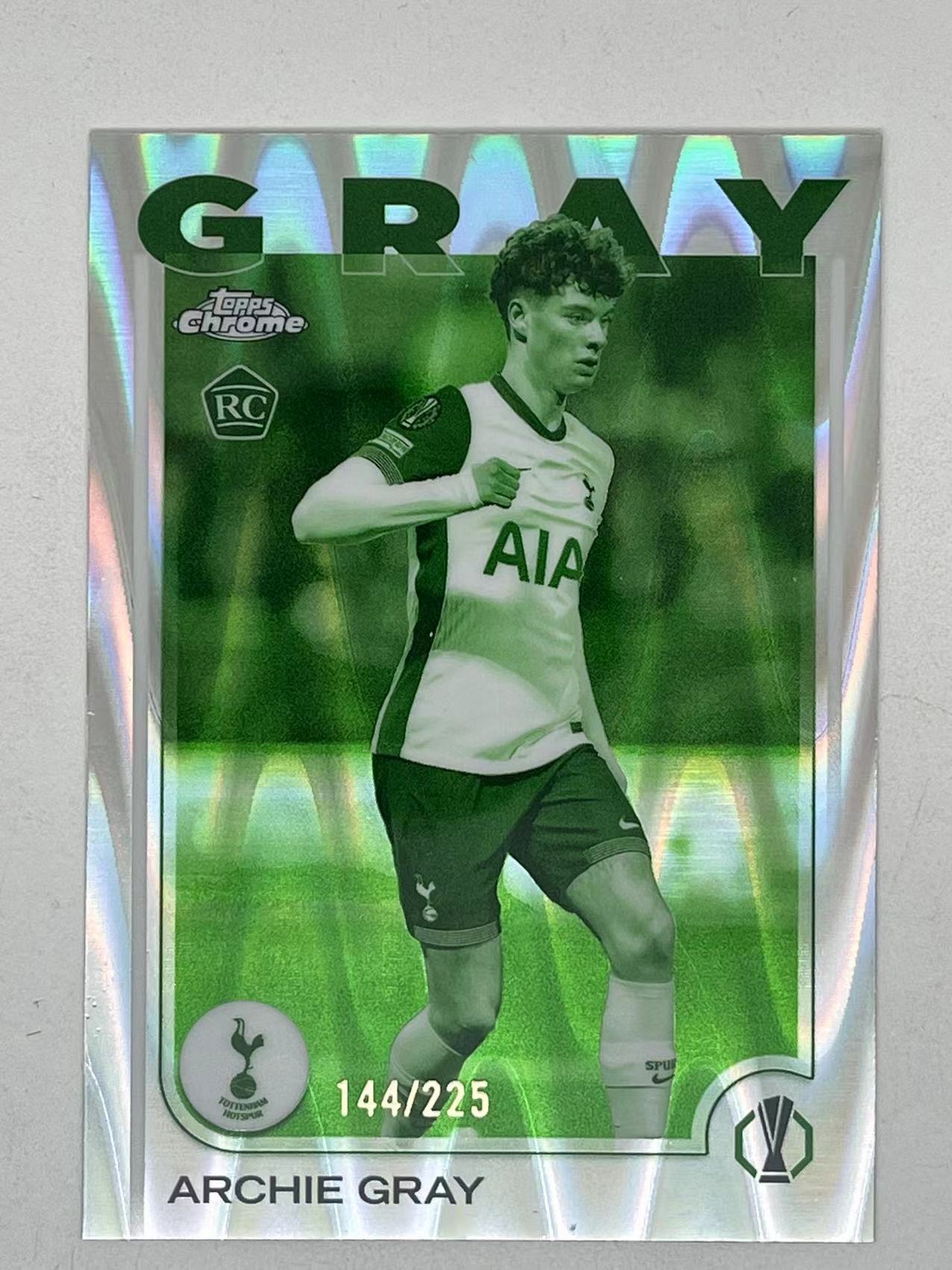 2025 Topps Chrome ARCHIE GRAY RC 【宁动拍卖】欧冠TC 热刺 英格兰 阿奇 格雷 144/225编 荧光变形虫折 波纹折 折射 新秀RC 收藏必备 M豆老周