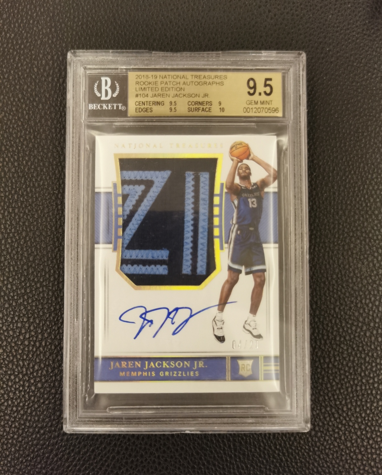 【金矿卡社】18-19 国宝 national treasures 灰熊新秀rc JJJ 小贾伦杰克逊 卡签签字 大窗落场球衣字母切割 rpa 4/20编 bgs9.5/10金标 莫兰特搭档 晨光