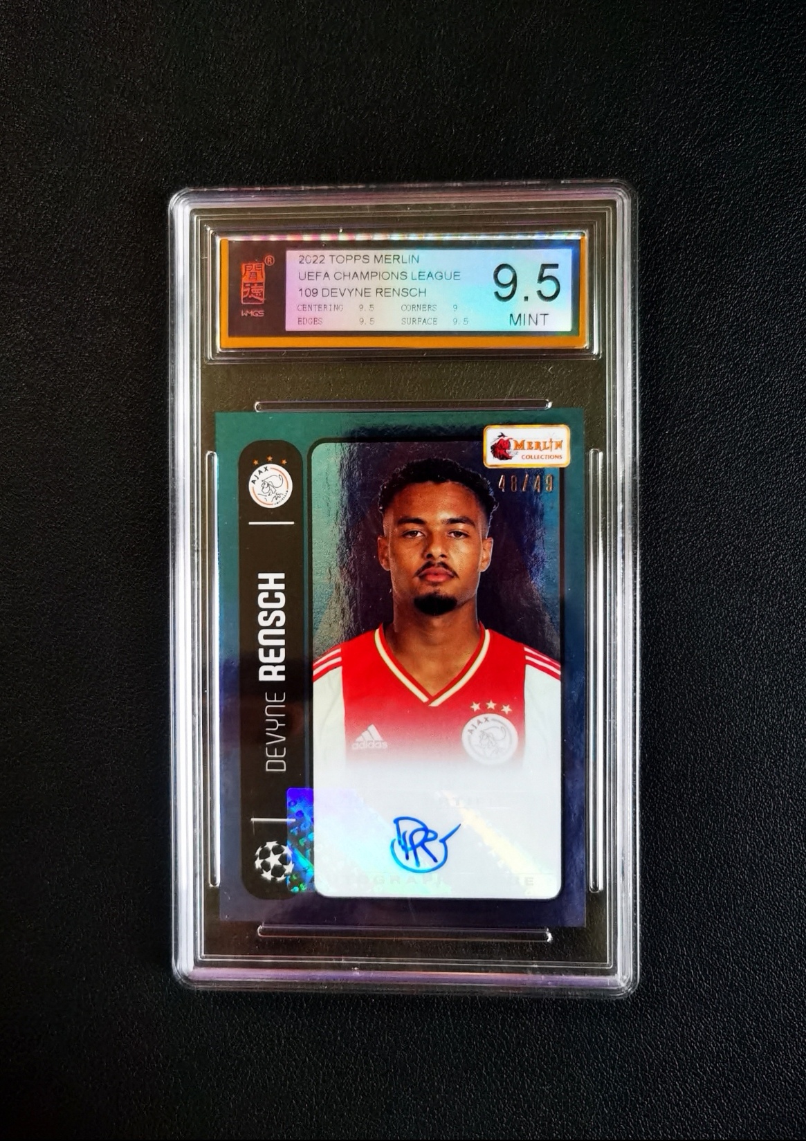 2022 Merlin Merlin chrome Devyne Rensch 欧冠 梅林 阿贾克斯 罗马 荷兰 伦施 48/49编 签字 蓝折签 完美签 防守铁闸 9.5分评级卡 专收必备【R12】