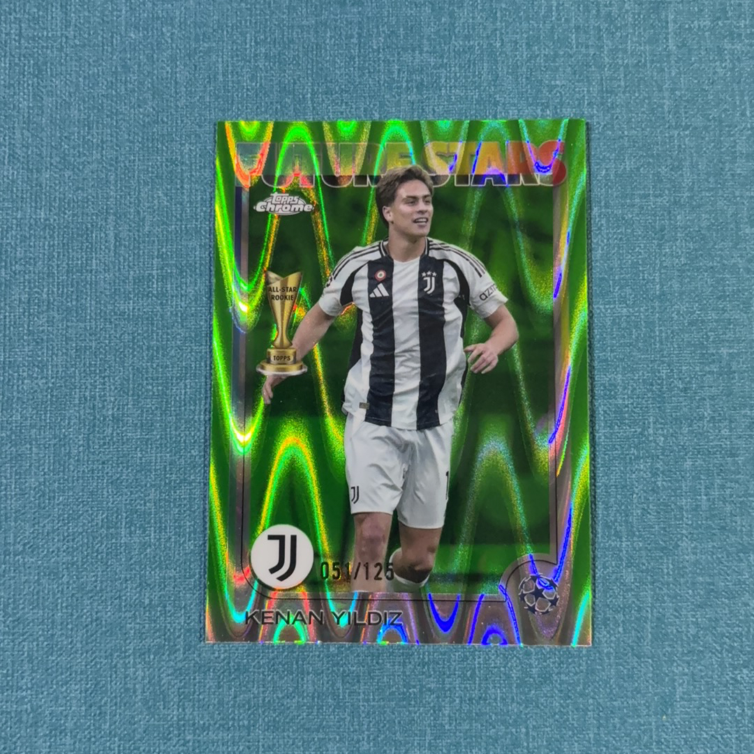 2024-25 Topps Chrome 欧战 Kenan Yildiz 凯南 伊尔迪兹 051/125编 绿波纹折 未来之星 特卡 尤文图斯 卡品如图 JJH