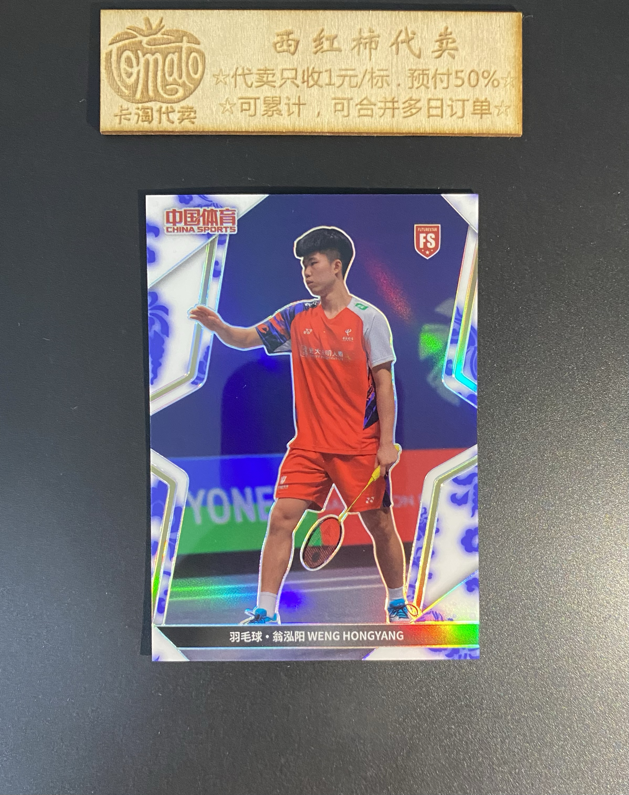 2024 奇卡 QICA 中国体育 凌云 翁泓阳 RC 新秀 FS Wen Hongyang【西红柿】 羽毛球 男单 15编 青花瓷折 折射 特卡 大比例 微瑕 3779