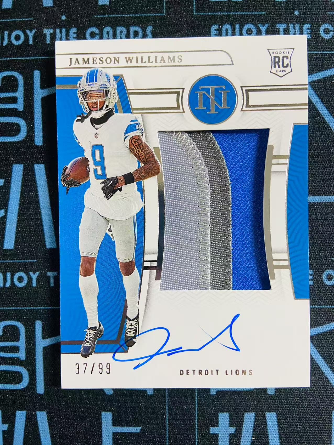 【出好卡 找扒卡】2022 Panini National Treasures Jameson Williams 国宝 新秀RC 贾米森 威廉姆斯 雄狮 签字 卡签 /99编 正RPA 球衣patch 升值鉴赏佳品 打坐0531BK02